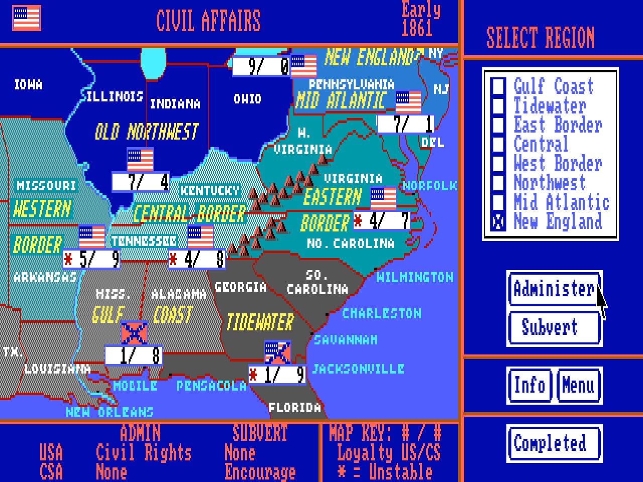 В этой стратегической игре вам предстоит сделать непростой выбор, будь то мобилизация поддержки для военных кампаний или управление тонкой дипломатией с иностранными державами. Судьба нации зависит от того, как вы справитесь со сложной динамикой того времени. В роли Линкольна вам придется решать такие спорные вопросы, как призыв в армию чернокожих солдат или угроза отделения Юга. В роли Дэвиса вы будете решать задачи по поддержанию дела Конфедерации в условиях ограниченных ресурсов и внутренних разногласий.
