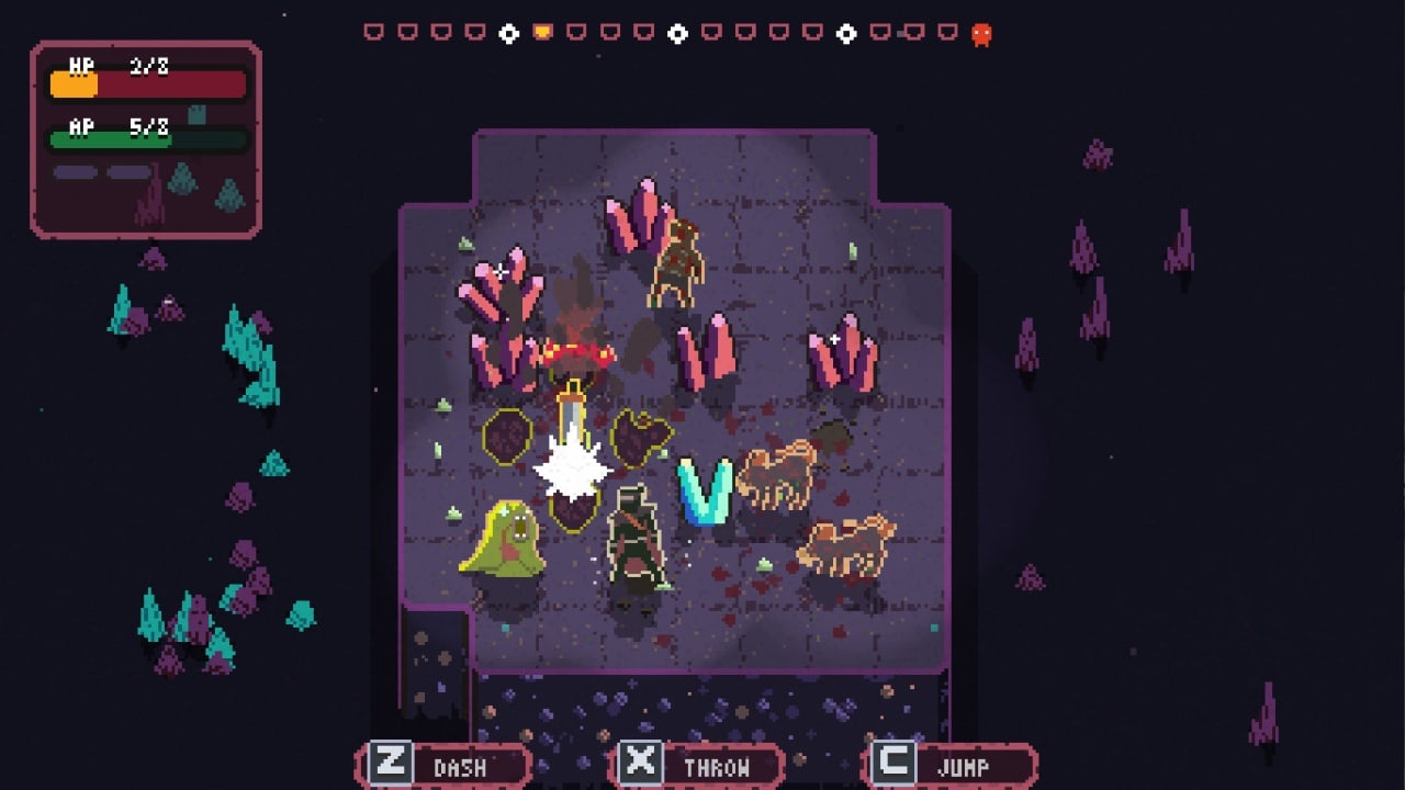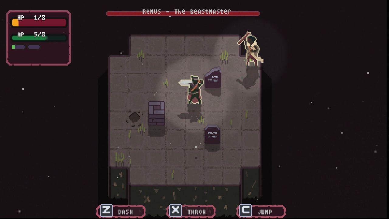 Геймплей в Undergrave похож на Red Ronin – другую игру от тех же разработчиков. Игровой процесс напоминает модифицированный сокобан. У героя есть 3 способности. Он может метать свой клинок в нескольких направлениях, совершать рывок по прямой линии (пока не упрется в препятствие) и прыгать по вертикали, горизонтали и диагонали. Все эти активности расходуют шкалу выносливости. Каждый ход эта полоска понемногу восстанавливается. Если у бойца есть меч в руке, то он при контакте с противником наносит ему урон или убивает. Можно уничтожать несколько супостатов за одно движение. Если воин безоружен, то он отталкивает или оглушает недругов.