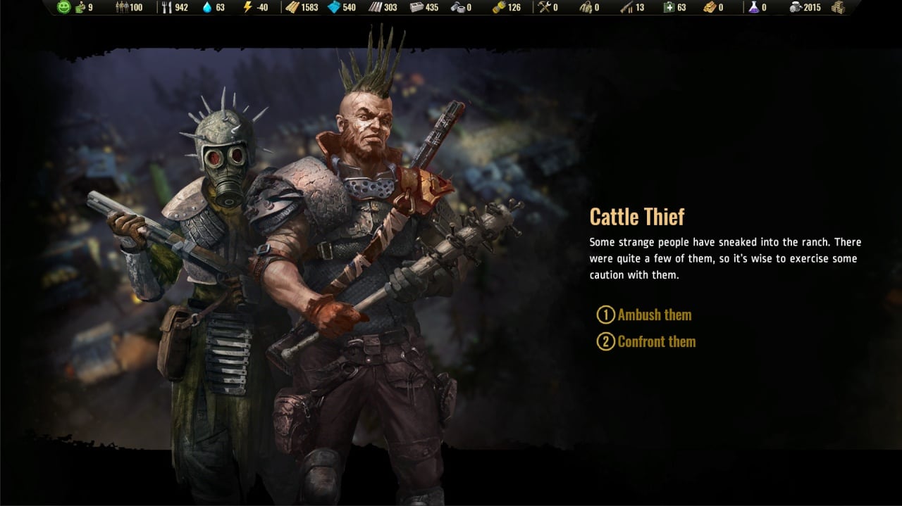 Путешествуя по миру, вы сможете наткнуться на бандитов или другое поселение. Либо защищайте свои владения от нападений и прокачивайте персонажей. Находите улучшенное оружие, крафтите экипировку и увеличивайте способности подопечных. Вам необходимо принимать тяжелые решения, чтобы сформировать правильный характер будущей цивилизации. Занимайтесь строительством, отправляйте специалистов исследовать новые земли, добывайте ресурсы, деритесь с врагами и делайте все, чтобы выжить в опасном мире. Спаситесь от множества стихийных бедствий. Некоторые биомы включают уникальные погодные условия, которые могут быть как полезны, так и плохи для успешного выживания.