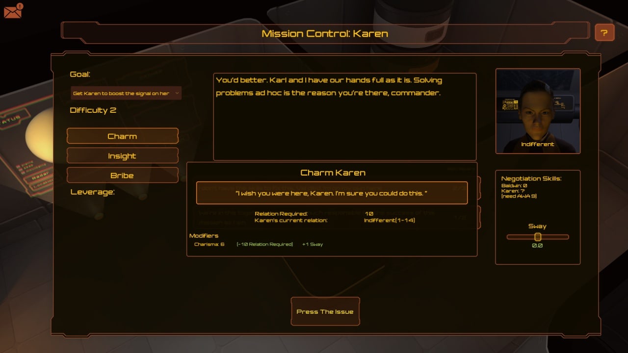 В вымышленной вселенной, вдохновлённой произведениями Роберта Хайнлайна, Артура Кларка, Айзека Азимова и Станислава Лема, предстоят трудные выборы, и от Ваших решений зависит судьба мира. История вселенной полна загадок, сюжетных поворотов и ярких персонажей. Присутствует детальная система управления базой и создания персонажа. Игрок повстречает на своём пути множество трудностей – и ему придется либо разрешать конфликты мирным путем, либо применять силу. В игре есть полеты, классическая ролевая система и крафт. Все лучшее из разных жанров было объединено, чтобы получить увлекательный игровой процесс. Покорите оранжевую луну и соберите минералы – человечество рассчитывает на Вас!