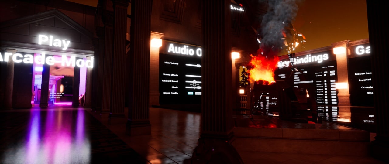 DownhillMadness может заинтересовать любителей экспериментальных инди-проектов. Это смесь физического симулятора, шутера от первого лица и аркады. За трехмерную графику здесь отвечает движок Unreal Engine 5.1. Инди-проект выполнен в научно-фантастическим сеттинге. Он переносит юзера в сюрреалистичный мир. У этой игры нестандартная система настроек. Игрок сразу оказывается на карте без попадания в главное меню или просмотра интро. Все опции разбросаны по стартовой локации. Чтобы настроить звук, пользователю необходимо отыскать соответствующую большую стенку в здании. Аналогичным образом здесь настраивается визуал, управление, интерфейс, а также проводится сохранение прогресса.