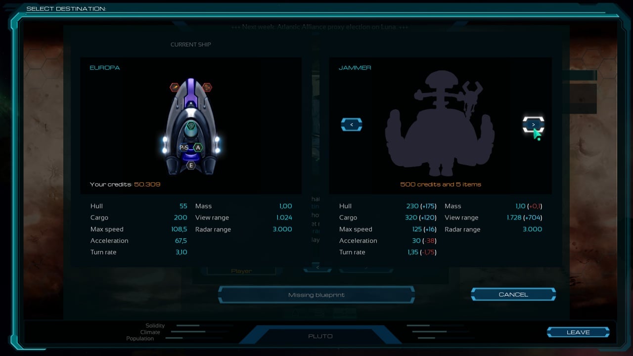 Главная цепочка квестов, повествующая о Ганимедском гриппе, развивается на протяжении 10 миссий. Дополнительные, необязательные, поручения присутствуют для фарма предметов. Их больше, чем основных, на 40 штук. Собрав достаточное число наград в виде ресурсов для крафта, игрок получает шанс создать новый космический корабль, среди которых 50 моделей разных объемов, форм, с отличающимся количеством брони и лазерных пушек.