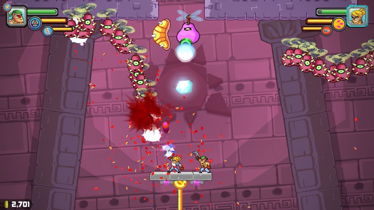 Большинство существ в Greedy Guns враждебно относятся к нашему агенту, и приличное количество времени геймплея вам придется потратить на сражение с инопланетными монстрами. Пробивая себе пусть сквозь полчища странных существ, вы будете собирать их генетическую информацию в виде ДНК. А в конце каждого уровня герою предстоит сразиться с "боссом", к этим парням нужно найти особую тактику сражения, и стараться не угодит под их мощные атаки.