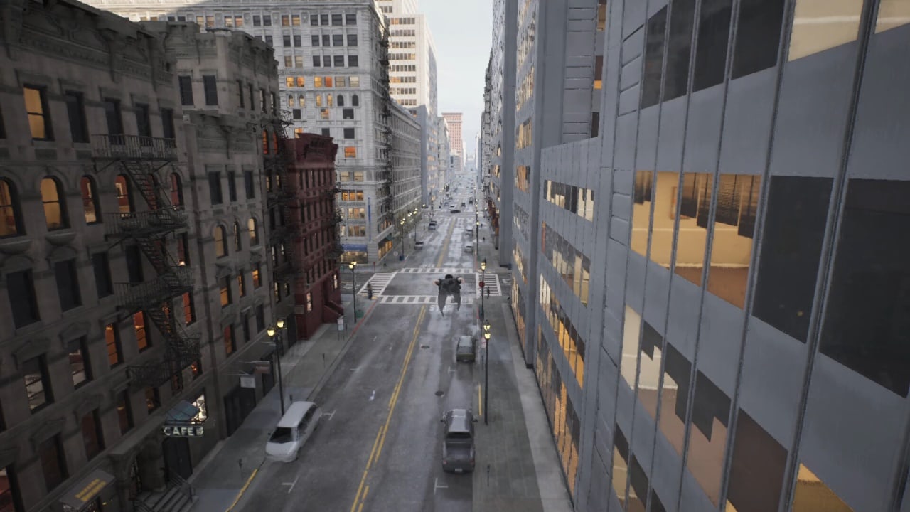 В переводе с английского языка на русский имя проекта означает Город: Опыт полета супергероя. Несмотря на упоминание супергероев в названии, здесь нет персонажей в плащах и комиксных костюмах. Эта видеоигра подражает не мультивселенным из комиксов, а серии фильмов The Matrix. В самом начале игроку прямым текстом говорится, что он входит в Матрицу. Всё это сопровождается узнаваемыми спецэффектами. Поскольку это бюджетный инди-проект, то в нём нет лицензированных и узнаваемых персонажей. Поэтому вместо Нео тут юзер получает под свой прямой контроль похожего на него безымянного парня в длинном стильном плаще с закатанными рукавами и черных солнцезащитных очках.
