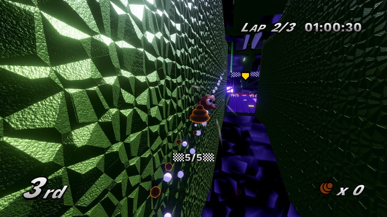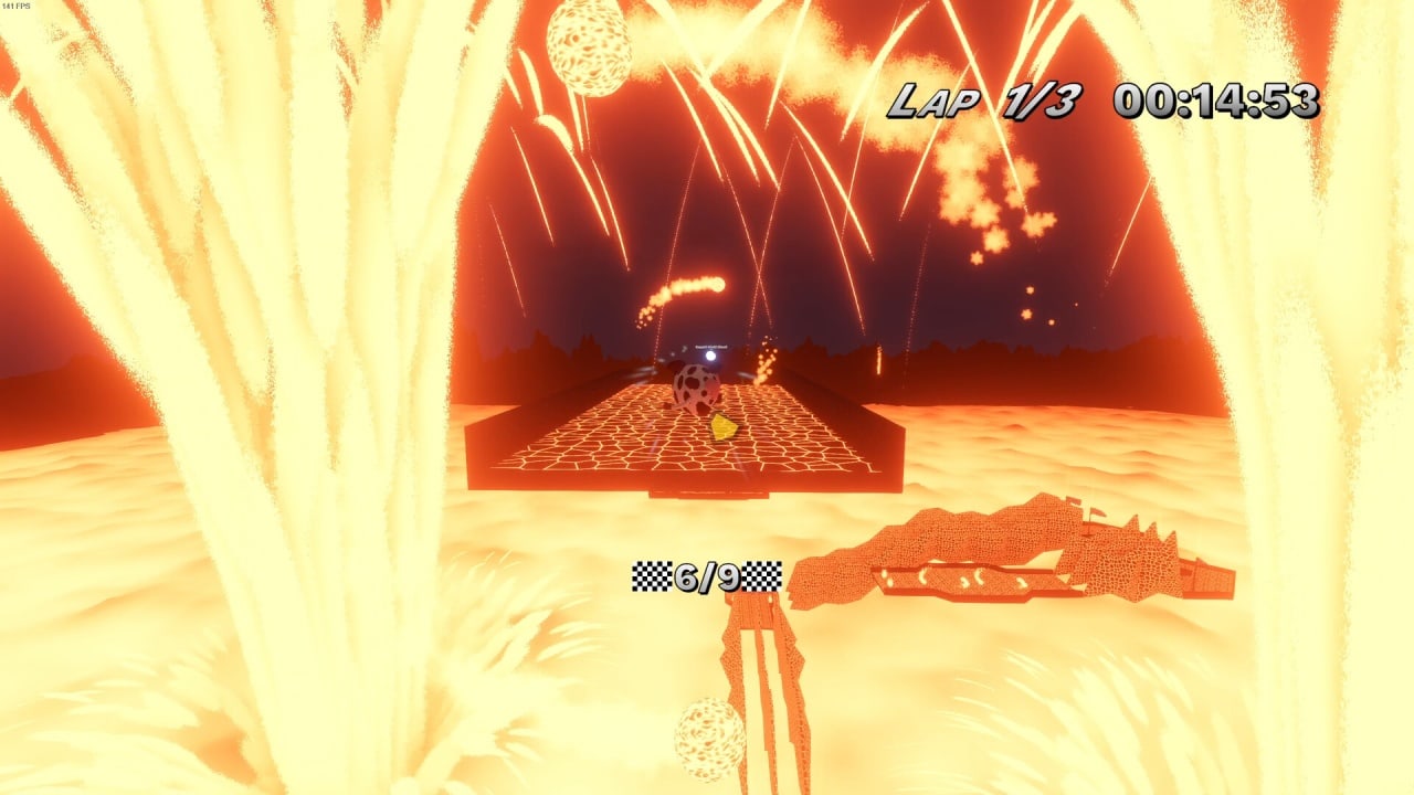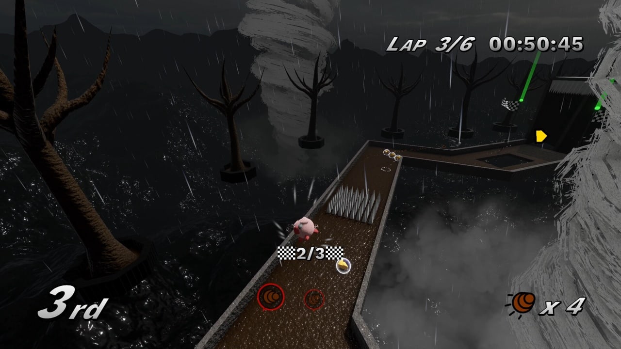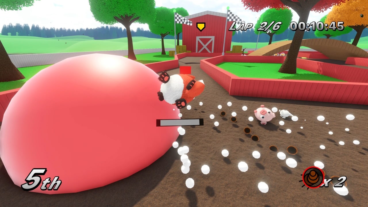 FurBalls Racing – это аркадные гонки с элементами платформера и трехмерной мультяшной графикой. Вместо машины игрок управляет похожим на мячик милым животным. Есть шарообразная коровка, собачка, котик и так далее. На выбор предоставляется около 16 персонажей, но не все из них доступны с самого начала. Эти звери перекатываются. Они могут набирать и сбрасывать скорость, поворачивать влево и вправо, рикошетить от стен, подпрыгивать и ускоряться (если юзер коснется разбросанных по трассам ускорителей). Все треки здесь кольцевые. Геймплей местами напоминает секции со скоростными забегами из трехмерных видеоигр про Соника. Также проект отчасти похож на серию Monkey Ball (с тем лишь отличием, что здесь надо контролировать не окружение, а самого зверька). Для победы нужно прокатиться 3 круга и добраться до финиша раньше соперников. По пути необходимо преодолевать различные препятствия. Также при желании можно собирать разбросанные повсюду бонусы. Они позволяют выстреливать в оппонентов самонаводящимися снарядами.