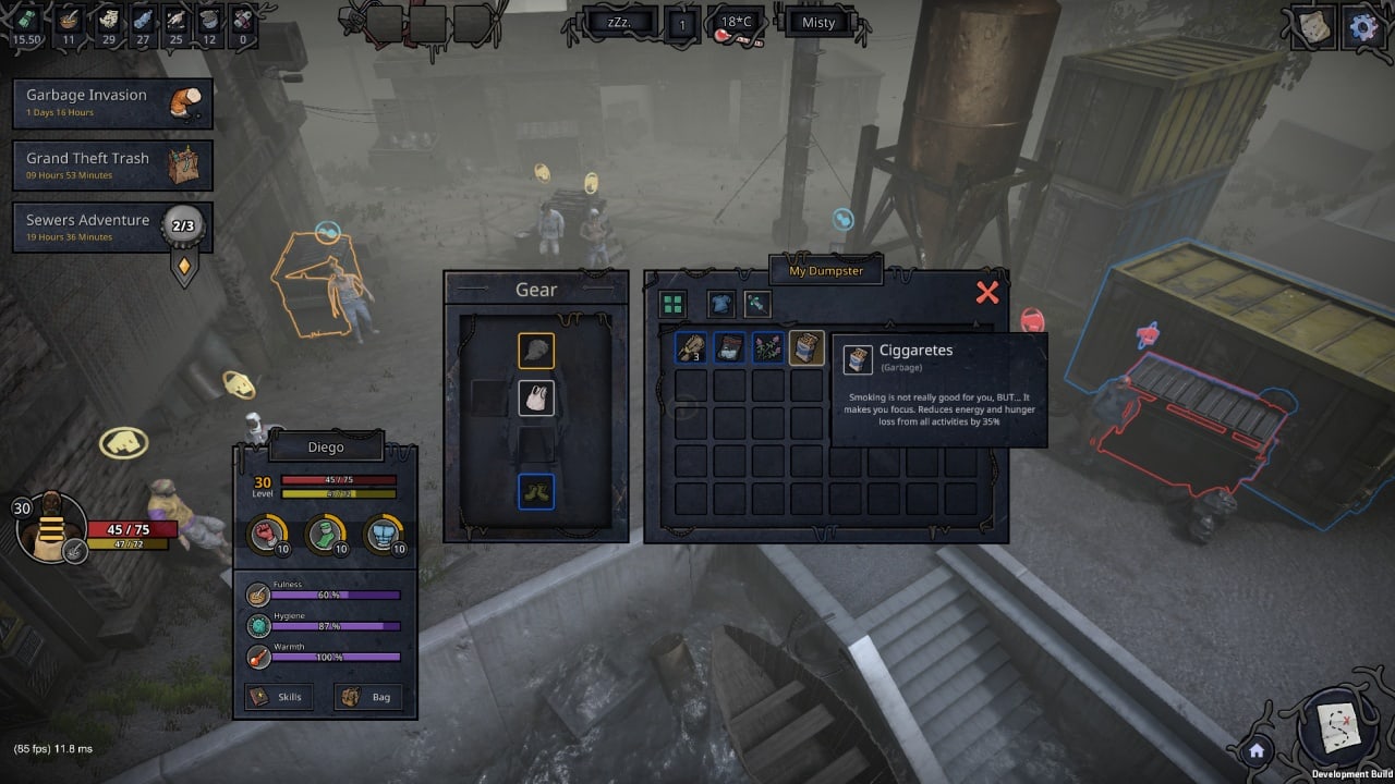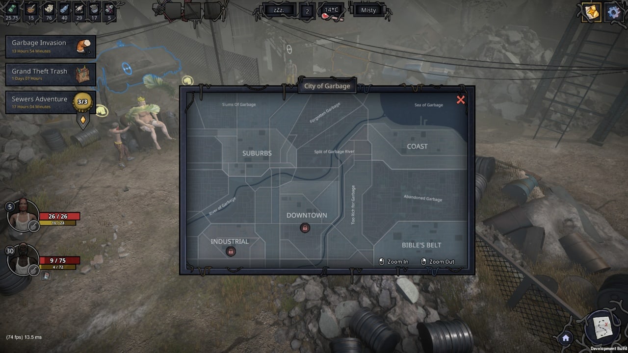 Действует динамическая смена суток и погодных условий. Осадки могут напрямую влиять на окружение и игровой процесс. Инвентарь представлен сотнями видами предметов. Собирайте их ради мусора, используйте или продавайте. Представлено 5 уникальных районов, которые состоят из 30 зон. Дети - главные боссы в игре. Исследуйте сгенерированные окрестности, участвуйте в драках и многое другое.