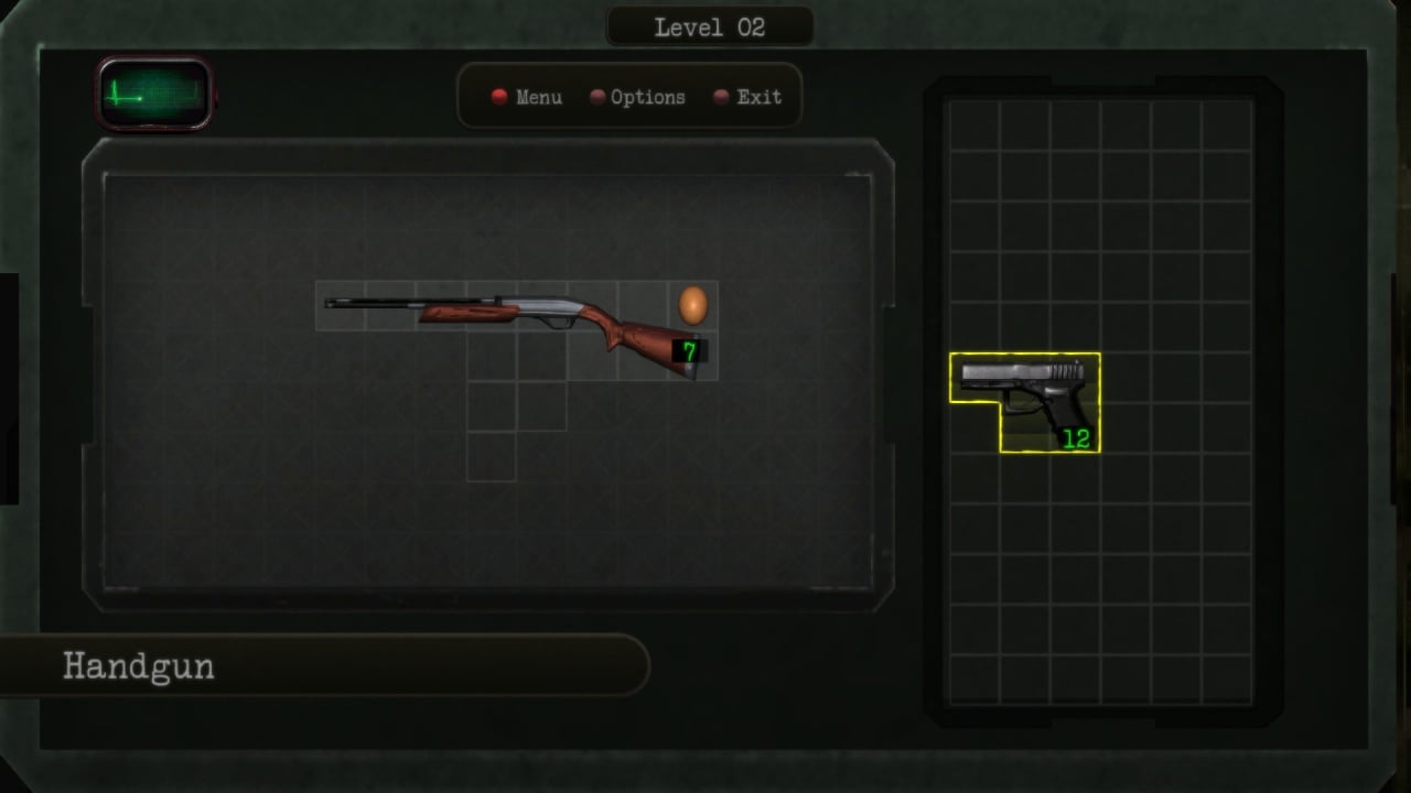 Время, отведенное на безопасную комнату, требуется расходовать грамотно. Воспользовавшись коротким промежутком времени, пользователю необходимо привести инвентарь в порядок, залечить раны и перезарядить вооружение. Потребуется сделать так, чтобы каждый предметы смог уместиться в инвентаре. Некоторые вещи понадобится выбросить, а это повлияет на успех исследования опасных локаций. Задача игрока – расставить предметы так, чтобы они могли комбинироваться между собой.