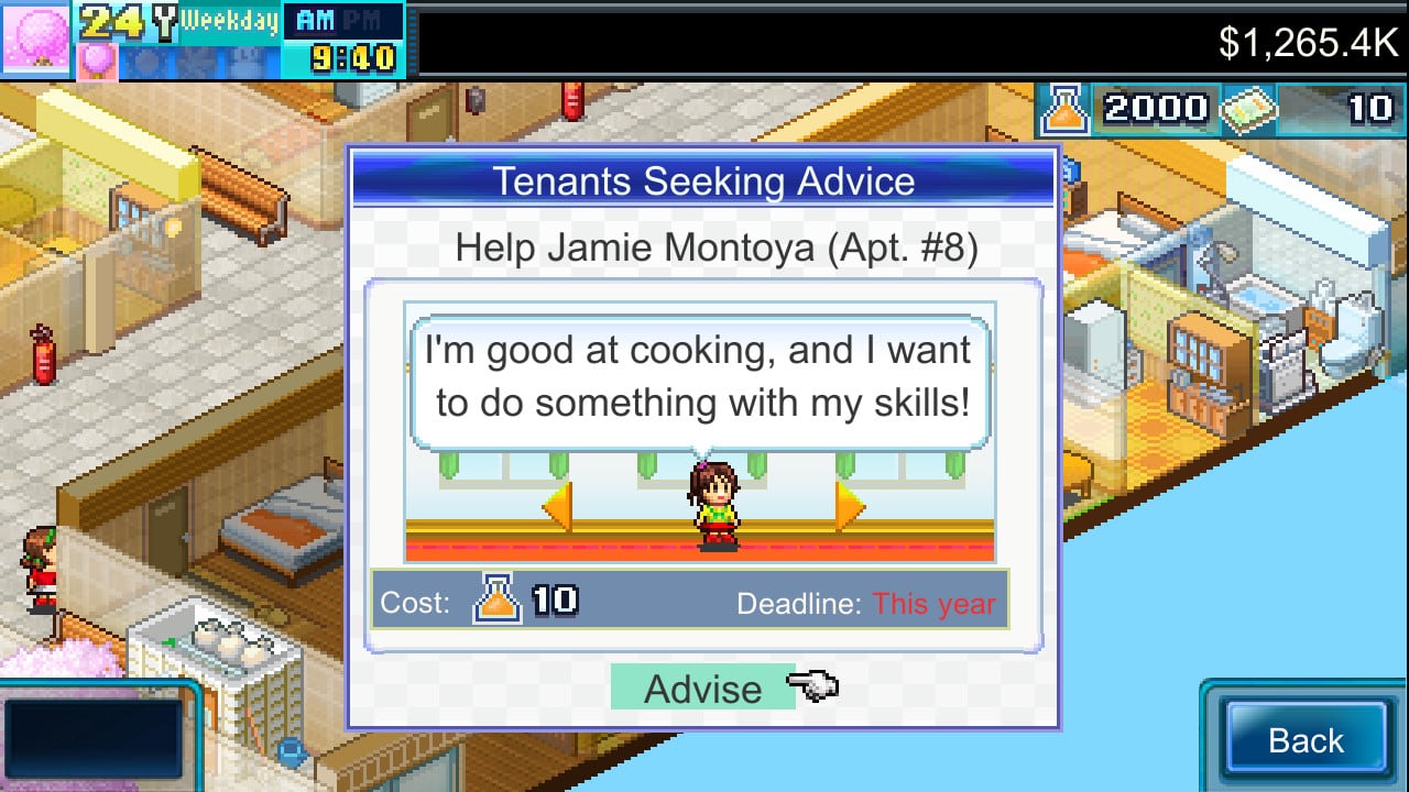 Dream House Days DX позволяет юзерам опробовать управленческую деятельность, взяв на себя обязанности человека, занимающегося сдачей квартир в многоэтажном доме. Пользователи будут заниматься развитием собственного бизнеса, а также полноценной модернизацией и расширением предоставляемых услуг в качестве арендодателя. Игра выполнена в жанре классического симулятора, где необходимо отслеживать за большим количеством факторов: социальным, экономическим, управленческим и т.п. Игрокам необходимо опробовать себя в роли менеджера, правильно распределяя ресурсы и продумывая стратегию по привлечению новых клиентов.
