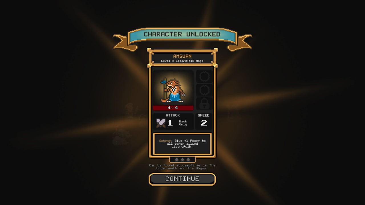 Поля боя состоит из 18 клеток – по 9 для каждой из сторон. Имеются 3 ячейки для героев (они могут перемещаться вверх и вниз или стоять в центре) и 6 для их защитников. Изначально отряд состоит из 4 существ, но по мере прохождения он расширится до 5 участников. За победы в сражениях все союзники героя получают опыт. При получении уровня им повышают количество жизней, увеличивают атаку и выдают новые способности. В схватках они не гибнут окончательно, а возрождаются после завершения потасовки.