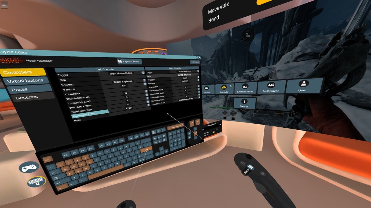 В качестве каталога в GameVRoom используется библиотека пользователя в Steam. Платформеры, шутеры от первого лица, РПГ, симуляторы - теперь все они могут быть опробованы в непривычном формате. Реализована эмуляция клавиатуры и мыши. Привязка жестов и действий контроллера к конкретным клавишам позволит выполнять ранее недоступные действия, такие как перезарядка и взмахи меча при выполнении соответствующего движения. Или, например, совершать перекат или прыжок одним касанием. Приложение предназначено, прежде всего, для того, чтобы подарить свежий опыт, и взглянуть на знакомые видеоигры под другим углом, меняя даже механику управления. Индивидуальными настройками можно также делиться с другими геймерами.
