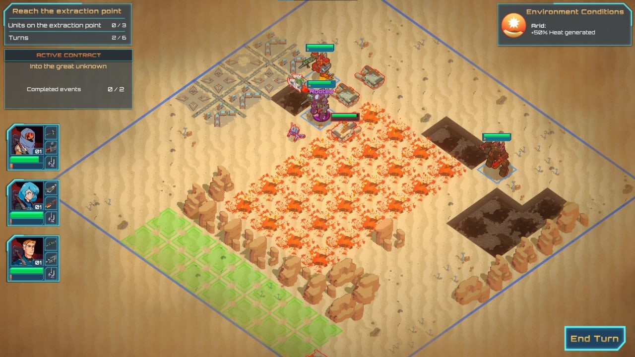 Ignited Steel: Mech Tactics - пошаговый рогалик, позволяющий управлять целой командой боевых мехов. При помощи роботов необходимо сражаться с умным искусственным интеллектом, жаждущим уничтожить все живое на планете. Программа ФарОС была разработана для того, чтобы распределять ресурсы по всему миру, однако ИИ начал развиваться и напал на людей.