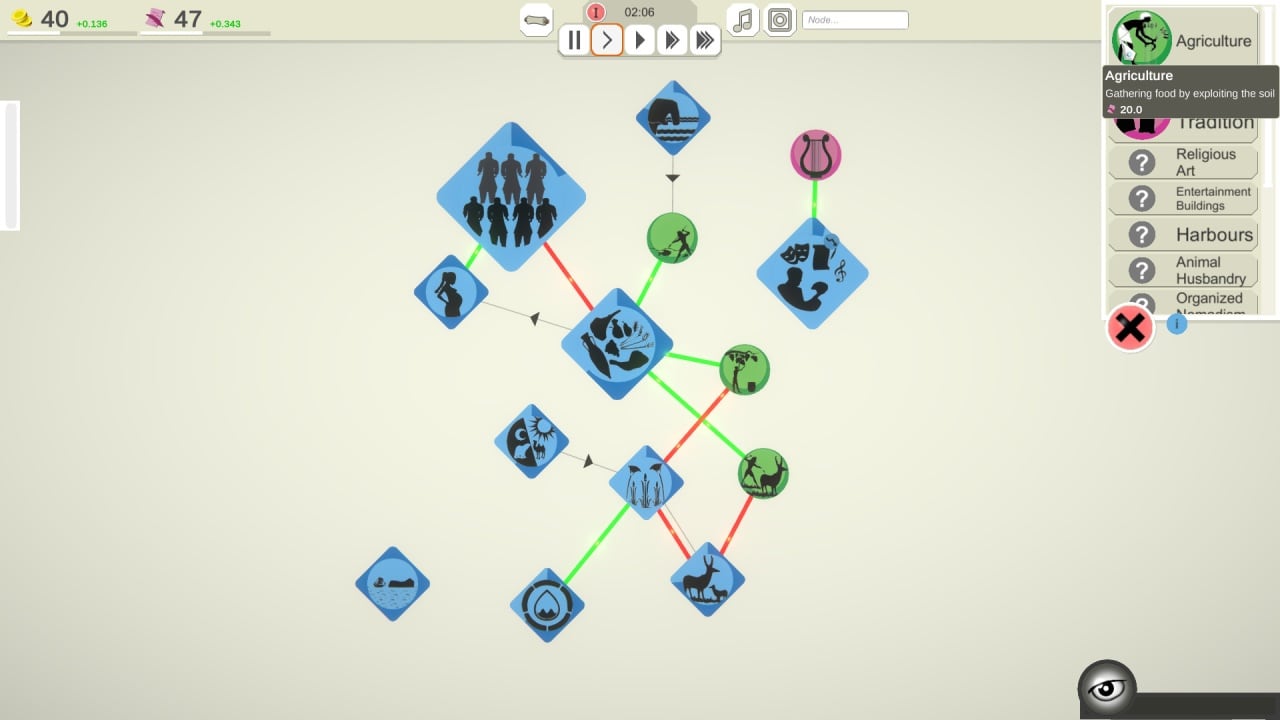 Погружаясь в Орби Юнивёрсо, приходится взаимодействовать c отрезками времени, соединяя между собой узлы. Получится комбинировать между собой эпохи, получая улучшения в уже существующей технологии или создавая новые. Придется определяться с культурным или политическим движением, который скажется на формировании цивилизации. Геймеры выбирают где хотят начать игру, проводя общество от первобытных племен-охотников или собирателей до большой империи. У каждой страны есть собственная черта, позволяющая менять геймплей.