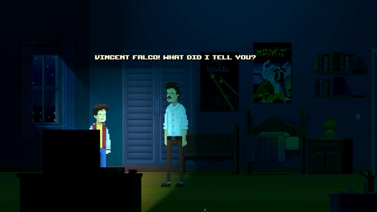 Тайтл вдохновлен культовыми фильмами, вроде "Терминатора" или "Чужих среди нас". Также продукт сильно подражает сериалу Stranger Things. Здесь тоже используется научно-фантастический сеттинг, а в качестве временного периода выбраны 1980-е годы. Трое друзей бродят по различным локациям (тут есть магазин комиксов "Изумрудный меч", прокат кассет "Видеоблокбастеры", аркадный зал "Лазерные ламы" и другие места), решают головоломки, общаются с неписями. Для взаимодействия с окружением есть несколько действий: "поговорить", "взять", "посмотреть". Также имеется инвентарь для найденных предметов, некоторые из которых можно комбинировать.