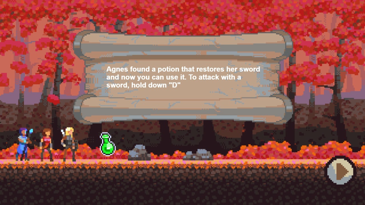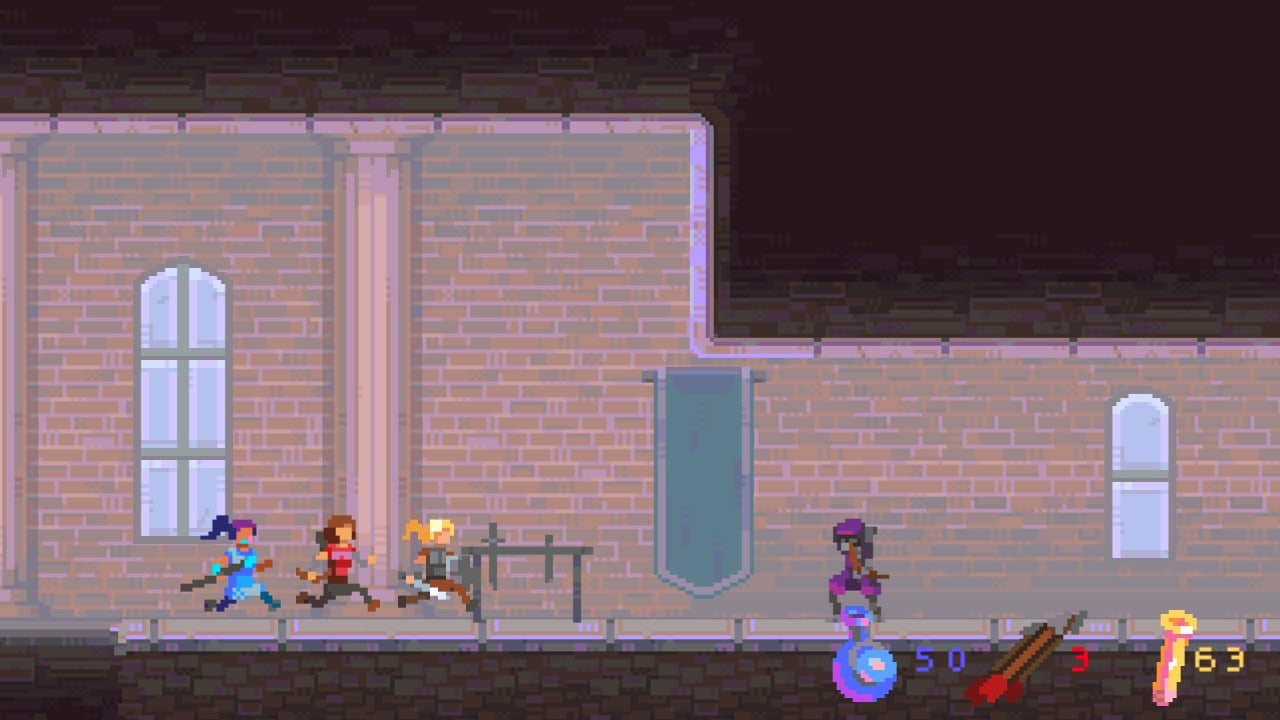 Hunter Girls – это гибрид платформера и раннера с элементами экшена, двухмерной пиксельной графикой и видом сбоку. От других видеоигр, где нужно часто прыгать, этот проект отличается количеством персонажей. Тут игрок управляет не одним протагонистом, а сразу несколькими. Все они являются девушками. Героини бегут за девушкой-лидером и повторяют её движения. Если одна из них погибнет, то придется начинать конкретный уровень заново. На их пути кроме препятствий встречаются различные противники. Враги представлены орками, скелетами, гаргульями, эльфами и другими фэнтезийными существами. С ними приходится сражаться на ходу. К каждому типу монстров требуется свой подход. На принятие решений в бою тут специально дают очень мало времени. Оружие не бесконечное, а магия какое-то время перезаряжается после использования. Завязка сюжета следующая. Некие злодеи похищают принца Алекса. И представительницы прекрасного пола отправляются в путешествие, чтобы освободить его из плена. У каждой барышни есть свои личные причины, чтобы спасать этого молодого человека. История тут подается в формате манги.