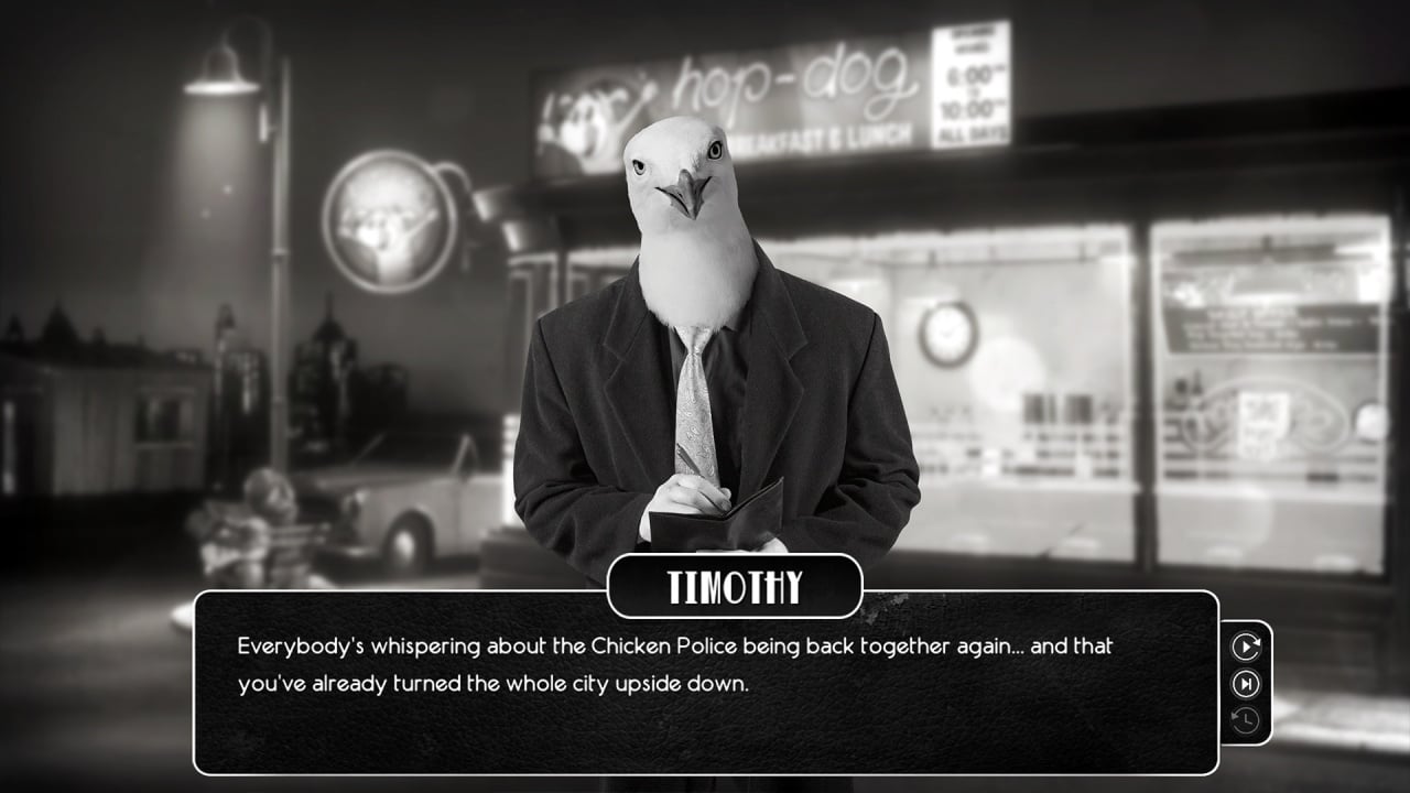 Геймплей представлен системой допросов, поиском улик и решением многочисленных головоломок. Пернатые копы вобрали в себя все основные элементы нуарного жанра. Игра полностью озвучена и содержит около 8 часов реплик. Вас ждет тщательно проработанный лор, богатая диалоговая система, порядка 30 героев и локаций. Каждый персонаж представлен индивидуальным характером.