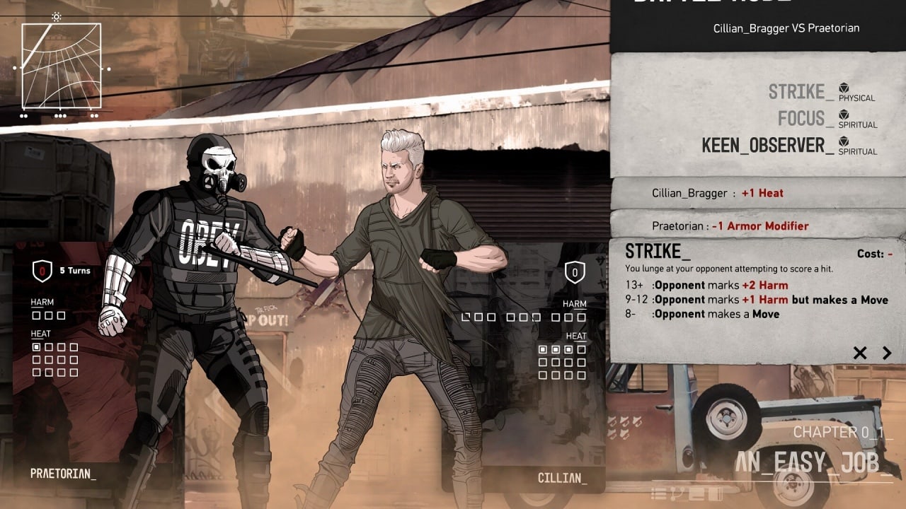 У DR двухмерная рисованная графика, напоминающая интерактивный комикс. Сам проект можно назвать смесью визуальной новеллы и ролевой игры. Несмотря на отсутствие редактора персонажа, юзер может сформировать образ выданного ему подопечного. Геймер получает 42 карточки характера, с помощью которых он создает личность киллера. Наёмник может пройти путь к 7 смертным грехам или к такому же числу добродетелей. Можно выстраивать различные отношения с NPC. Игроку часто необходимо делать выбор, что влияет на ход повествования. Он при этом не просто выбирает действие или реплику, но и бросает кости. От этих кубиков зависит результат и его последствия. Также здесь есть драки. Бои проходят в пошаговом режиме. В них надо выбирать типы ударов и тоже бросать дайсы. А ещё тут необходимо постоянно следить за температурой, чтобы не перегреться на жаре.