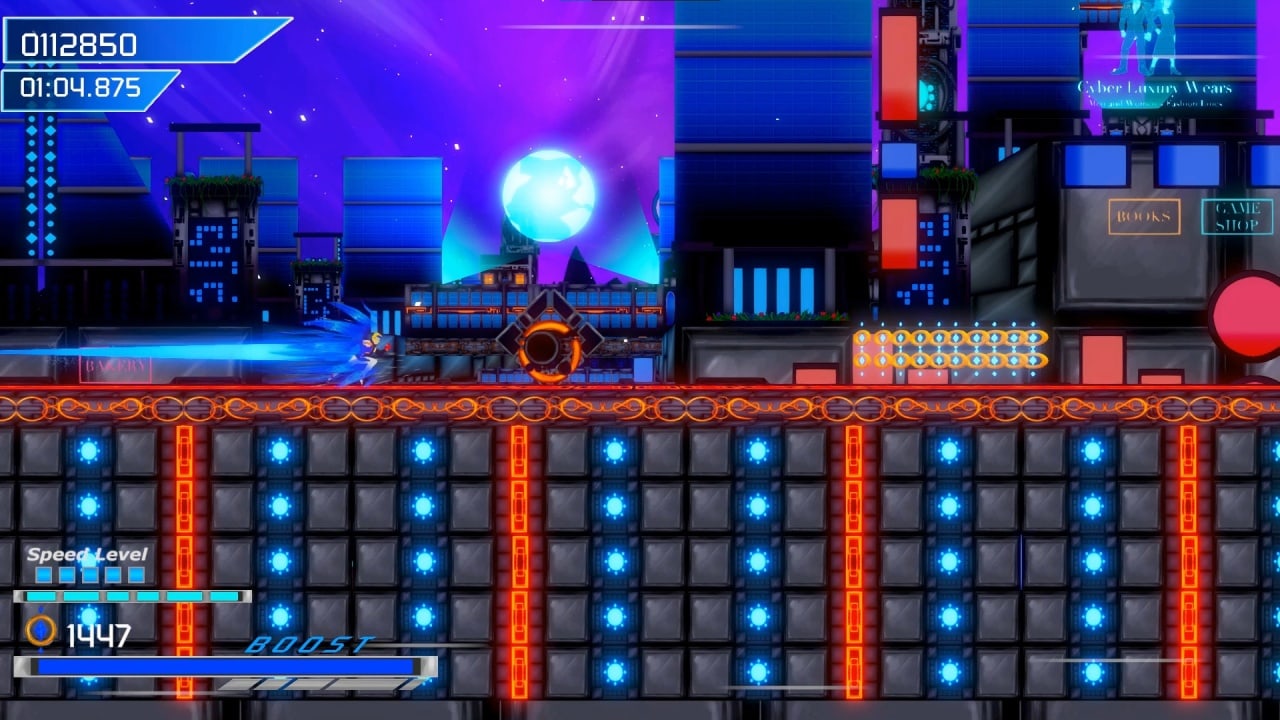 Изначально доступна только сюжетная кампания, что называется тут Историей. Ещё несколько режимов можно разблокировать, выполнив специальные условия во время прохождения. Сюжет подается в формате картинок с текстом. Их можно пропускать. Геймплей в проекте Спидбрейк Гипердрайв напоминает двухмерные игры про Соника. Здесь тоже надо стараться проходить уровни как можно быстрее, собирать кольца и зарабатывать очки. Также тут необходимо выполнять трюки. Все это подсчитывается после завершения этапа, а затем игроку выдается ранг. Видеоигра поощряет устраивать спидраны. Точные и быстрые движения увеличивают множитель комбо.