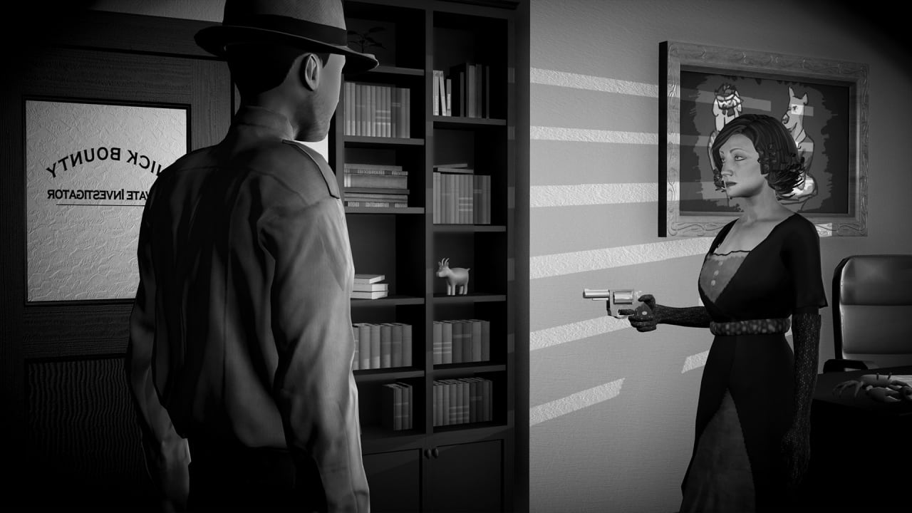 Пародийный юмор явно черпал вдохновение в “Голом пистолете” с Лесли Нильсеном. Чтобы расследовать загадочное убийство, бравый сыщик берет выбирает себе напарника, исследует черно-белые стильные локации, собирает и анализирует найденные улики - делает все возможное, чтобы раскрыть тайну смерти дамы в разношенной синей обуви. Nick Bounty and the Dame with the Blue Chewed Shoe - захватывающая история, в полной мере погружающая в эпоху популярности нуарных фильмов и прекрасно пародирующая стандарты жанра.