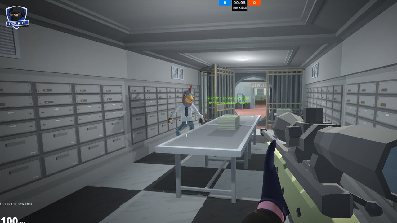 Для взлома сейфа и сбора денег необходимо время. Убийства заложников или спецназовцев никак не штрафуется, главная задача – сохранить наибольшее количество валюты. Обе стороны имеют доступ к обширному арсеналу: пистолеты, штурмовые и снайперские винтовки, ножи, гранаты и гаджеты. Плохие парни выбирают маски, чтобы отличаться друг от друга, среди них есть клоунские лица, маски лощадей, Президентов или известных людей.