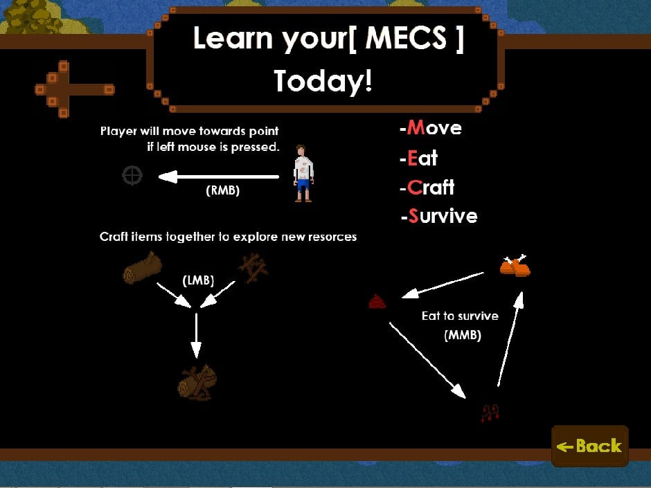 Игра своим геймплеем подражает Don't Starve. Это тоже выживалка с видом сверху, где по ночам появляются опасные монстры. У инди-проекта есть пара своих отличительных черт. Здесь отсутствует инвентарь. Для крафта предмета нужно перетянуть один объект на другой. Например: если перетащить камень на палку, то получится примитивное копье, а если переместить это оружие на курицу, то персонаж добудет мясо.