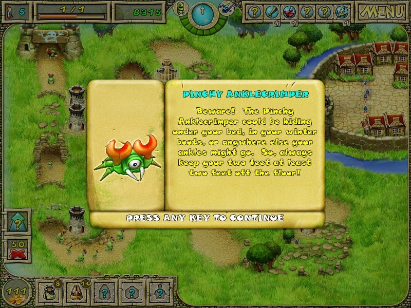 Отбивайтесь от огромной армии враждебных существ, используя хитрость и тактику. Постарайтесь опередить противника и выстроить линию защиты. Оберегайте свою крепость от штурма и укрепляйте стены своей базы. Устанавливайте башни и экипируйтесь самым разнообразным вооружением, среди которого как мощные пушки, так и различные магические приспособления. Спасите свое царство и не дайте вражеским отрядам проникнуть на ваши территории!