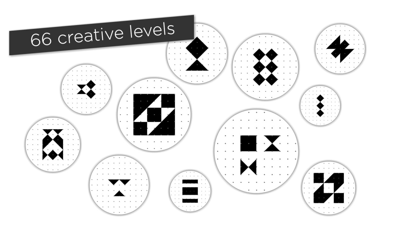 Игровой процесс представляет собой расслабляющее действие с максимально казуальным управлением, задействующим только мышь. За прохождение определённых моментов в одиночном режиме, пользователь вознаграждается достижениями из списка наград, что привносят дополнительную мотивацию находить максимально быстрые способы решить имеющуюся головоломку. Они выглядят как набор перетаскиваемых геометрических фигур разных размеров, например, параллелограмм, параллелепипед, квадрат, ромб, круг и так далее. На протяжении 66 уровней игроку нужно собирать из них готовые изображения, показанные сбоку. Чем ближе к финальному этапу, тем мельче становятся изначальные части конструктора, увеличивая сложность.