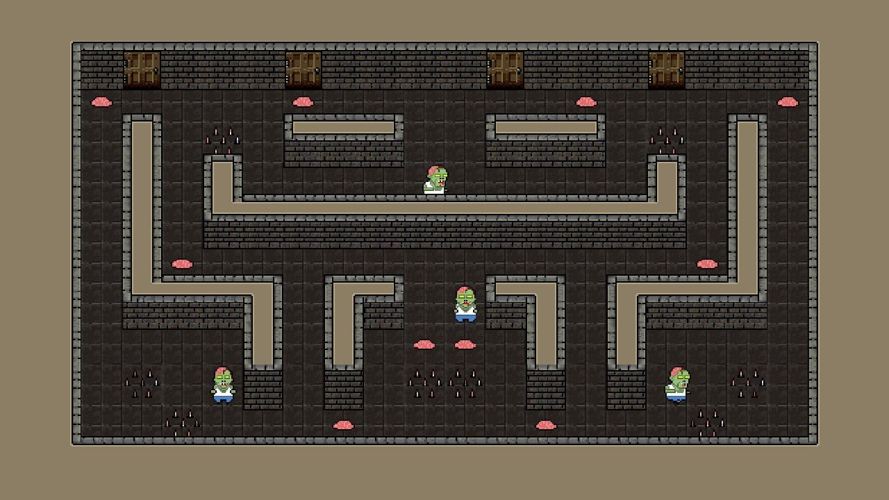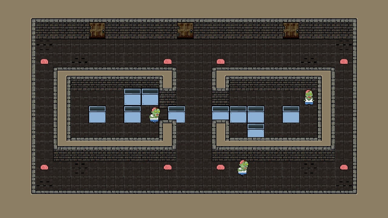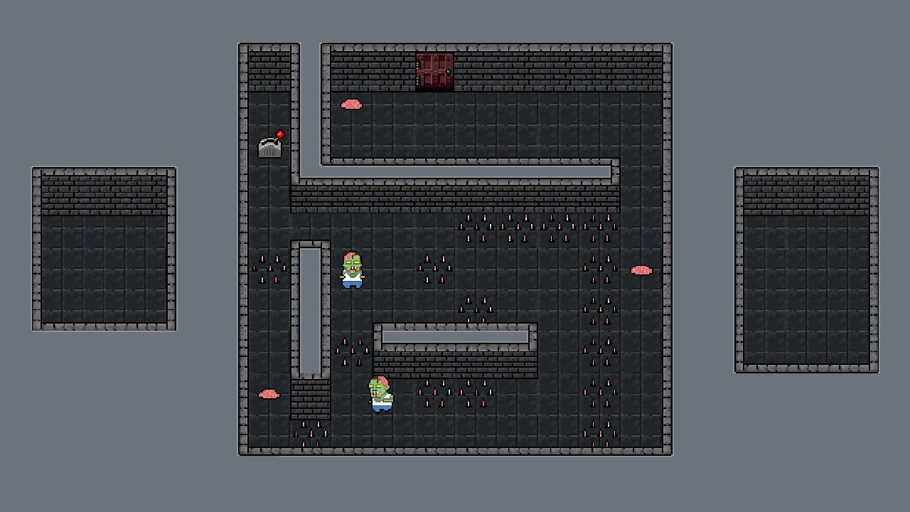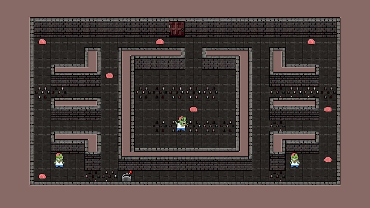 Всего игра имеет 30 уровней. В каждом из них есть дверь ведущая к выходу. Чтобы добраться до нее, нужно обойти ловушки, а также собрать бонусы в виде мозгов. Но именно здесь всплывает механика, из-за которой сложность повышается еще больше. Дело в том, что мертвецы могут стоять в разных частях локации, но при этом двигаться синхронно. То есть, при команде движения вправо, оба юнита начнут идти, и разделить их невозможно. Поэтому, важно заранее просчитывать действия, ведь если один из чудиков угодит на шипы, миссию придется начинать с нуля. Иногда, чтобы выйти из закрытого пространства, необходимо передвинуть блоки, чтобы переместиться. Так или иначе, HELPLESS ZOMBIES дает неплохую встряску и заставляет мыслить нестандартно.