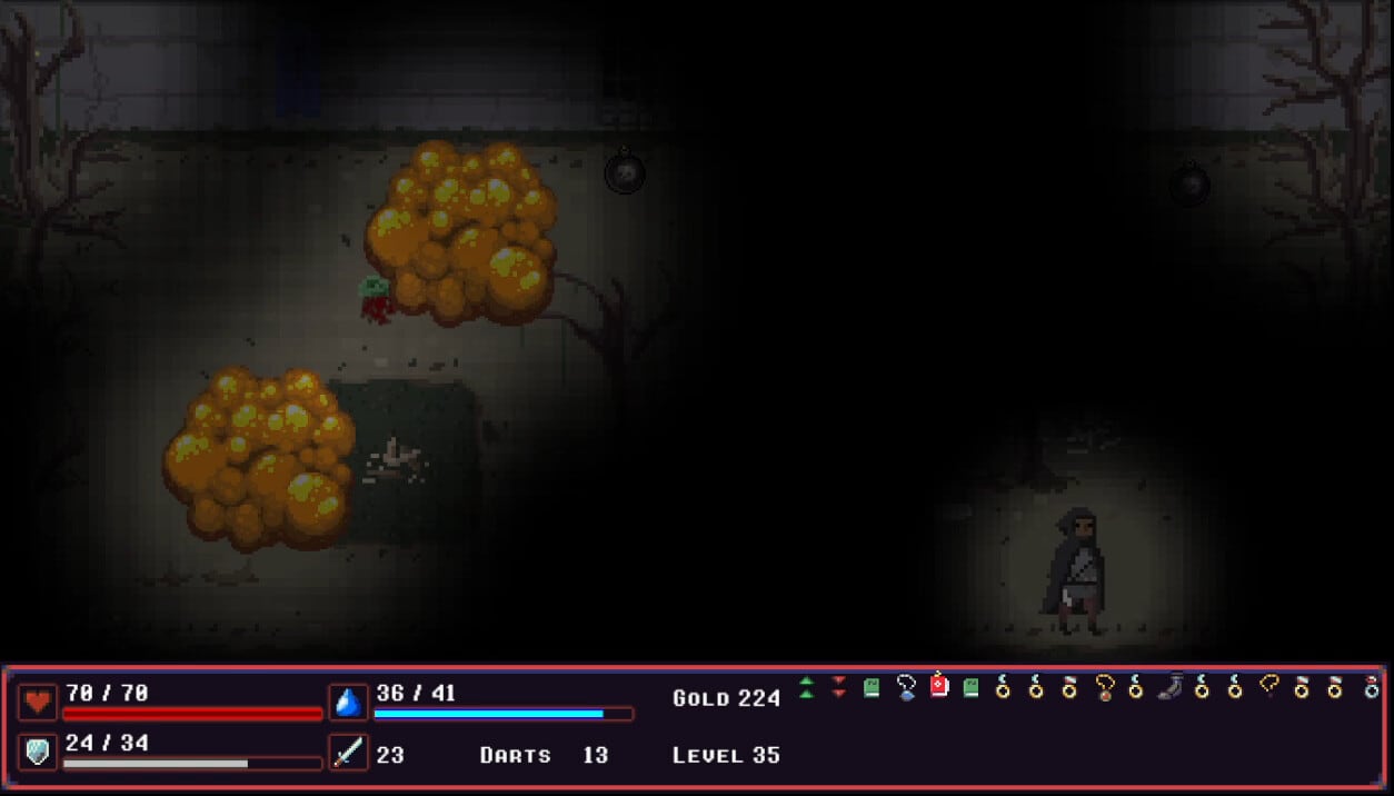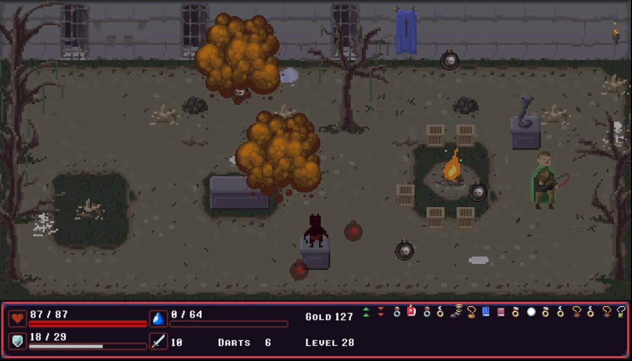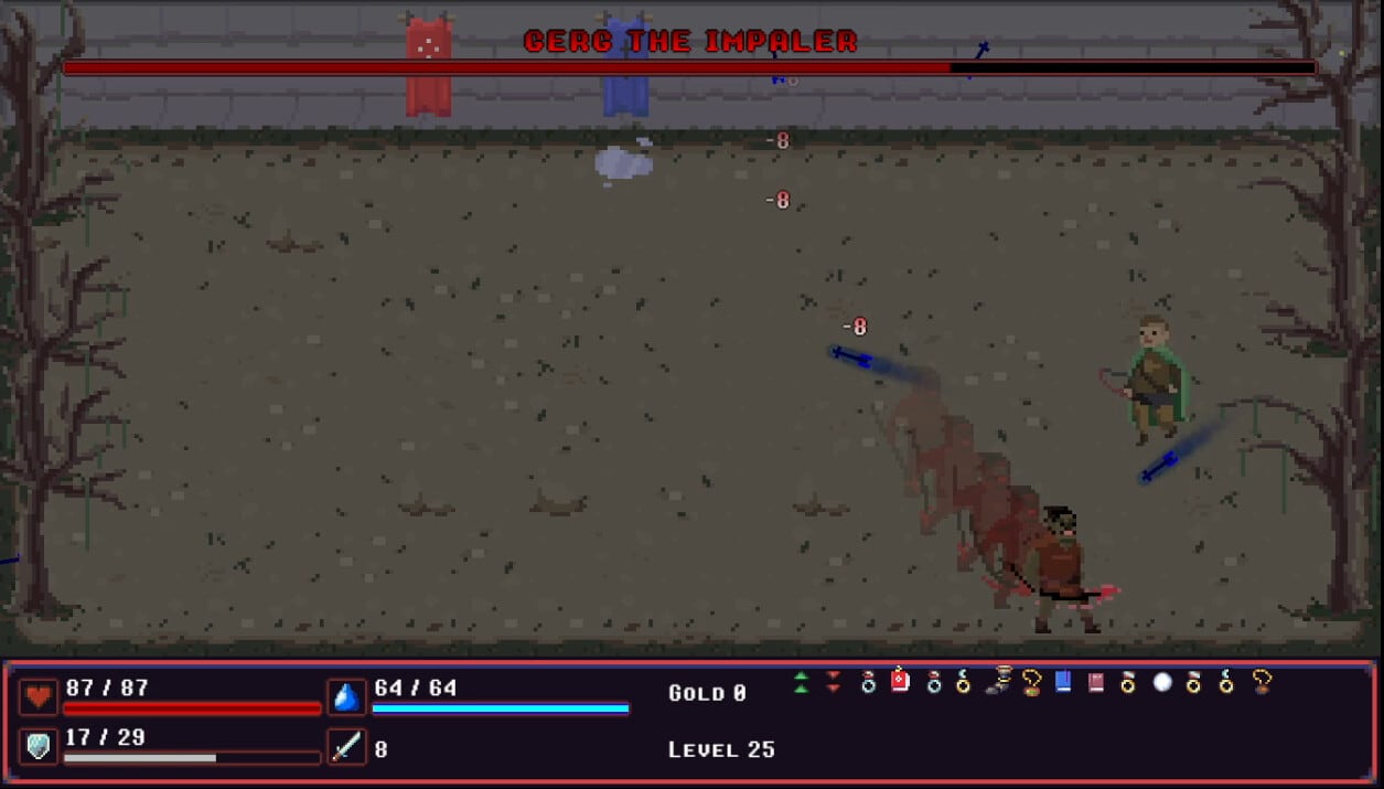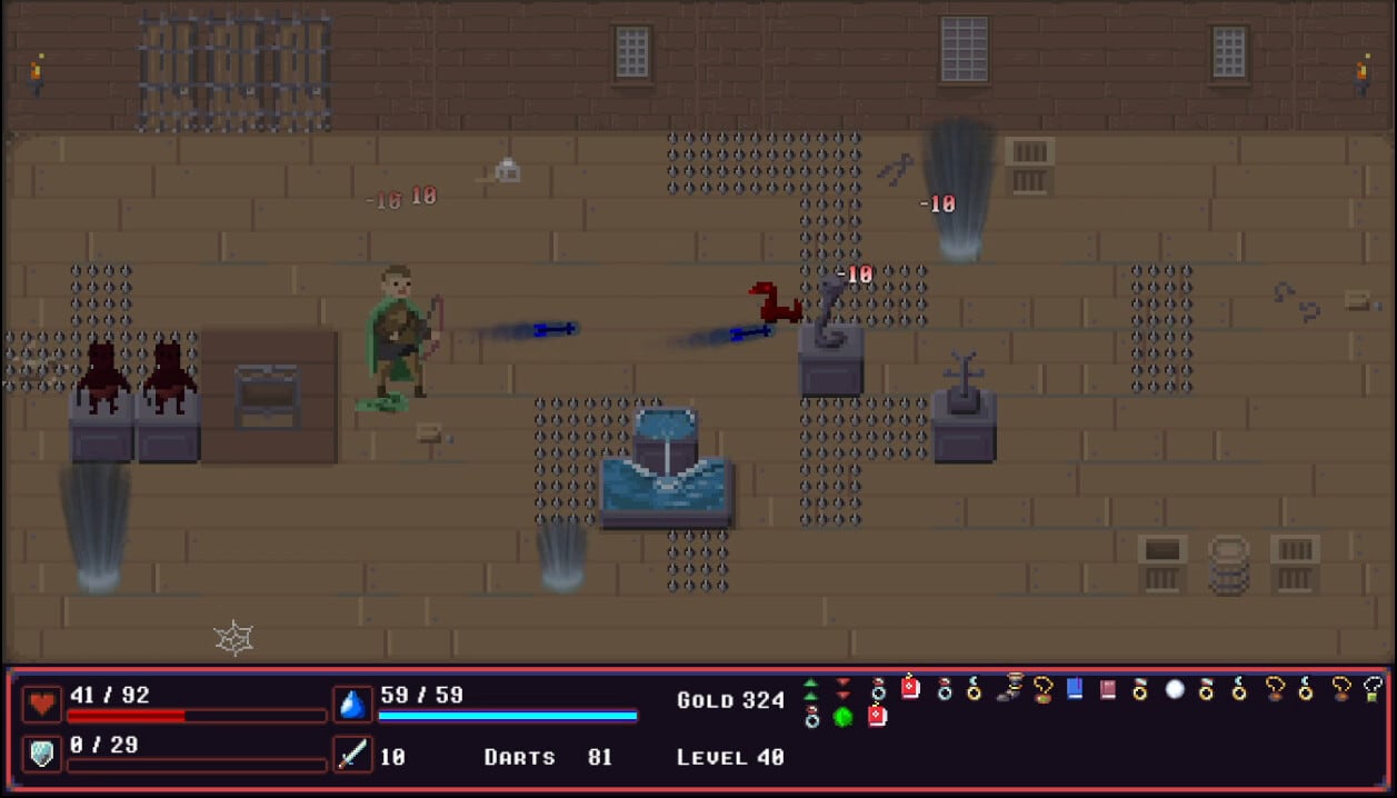Всего представлено 100 уровней одиночной кампании и дополнительный бесконечный режим. В нем доступно 5 зон, на которых потребуется сразиться с волнами врагов. Собирать можно более 40 видов самых разных предметов и вооружения. Перед началом прохождения требуется выбрать одного из 6 героев разных классов. Характеристики и баффы/дебаффы генерируются случайным образом. Помимо обычных противников предстоит сразиться с 4 мощными боссами.