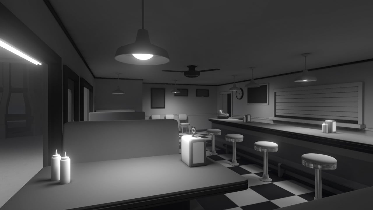 Вы сможете взаимодействовать с окружающими объектами, а небольшие цветовые предметы или свечения будут помогать вам в обнаружении следующих задач. Понадобиться полностью исследовать закусочную, чтобы найти хоть какие-то зацепки. Игровой процесс имеет лишь одну локацию, постепенно меняющую свой облик и содержимое. Именно на ней и будут разворачиваться все события. Эстетичная и отлично подходящая к геймплею музыка. Сюжет может быть пройден за пару часов, даже если долго не разгадывать головоломки.