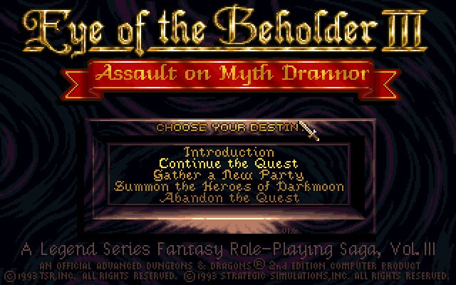 Eye of the Beholder 3: Assault on Myth Drannor – переносит игроков в новые приключения, продолжающиеся после окончания второй части этой серии. Игра создана на базе ролевки Подземелья и Драконы и переосмысливает настольные правила под компьютерный формат. Игрокам предстоит собрать отряд приключенцев и отправиться в путешествие, зачищая подземелья и сражаясь с монстрами, населяющими мир Забытых Королевств.