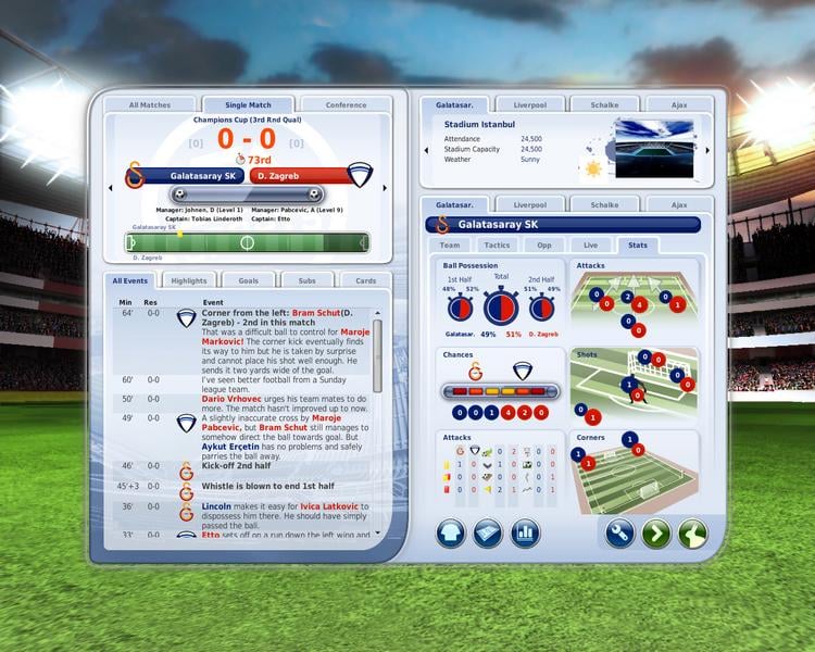Первое качественное изменение ФИФА Менеджер 09, которое сразу можно заметить, касается визуальной составляющей. Теперь модельки футболистов, сам стадион и прочие детали выглядят на порядок лучше. И хотя динамика поединков оставляет желать лучшего, футболисты довольно оперативно принимают решения в тех или иных ситуациях (с оглядкой на их уровень игры). Во время самого матча каждый опасный момент или гол сопровождается рядом повторов, где можно наблюдать момент с разных ракурсов. А если говорить непосредственно об элементах менеджмента, то здесь у геймера есть большая вариативность в изменении некоторых параметров. Можно менять схему, вектор атаки, давать индивидуальные указания конкретным исполнителям, просматривать параметры каждого члена команды, проводить переговоры касательно входящих трансферов и совершать прочие манипуляции. Есть даже элементы, не связанные напрямую с футболом. Например, тренер может заняться личной жизнью или купить себе новое жилье.