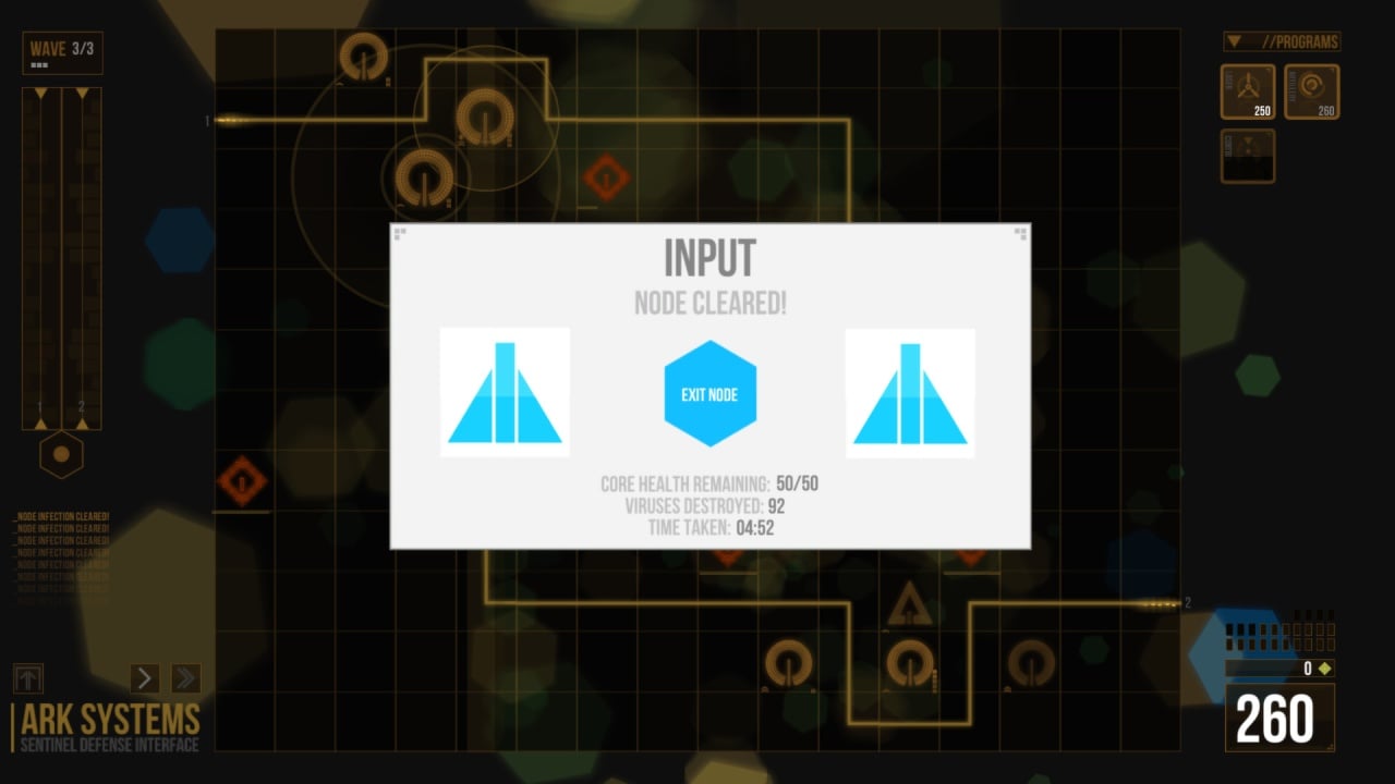 На игровом пространстве находится несколько объектов. Полоса – путь для вирусов, по которым следует противник. Точка доступа – объект, который требуется защищать. У главной точки имеется несколько жизней, если они заканчиваются то матч считается провальным. Башни подобны антивирусам, они не стреляют, если не заряжены энергетическими кубиками.