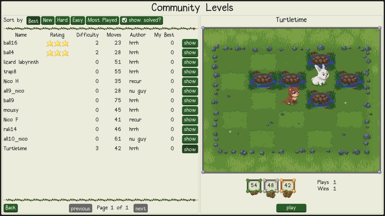 Of Mice and Moggies может заинтересовать любителей разгадывать пазлы и тех, кому нравятся кошки. В этой игре-головоломке с видом сверху нужно управлять могги. Так британцы называют обычных домашних котов, у которых нет породы. Представитель семейства кошачьих может двигаться только в четырех направлениях: вправо, влево, вниз или вверх. Питомец ходит по клеткам. Игровой процесс тут пошаговый. Задача юзера заключается в том, чтобы ловить мышей, ящериц и кроликов. Кроме них на карте часто присутствуют и другие живые существа. Также нередко попадаются различные препятствия. Инди-тайтл состоит из 100 этапов, за прохождение которых геймеру дают медали. При желании сложные уровни можно скипать, но не более трех раз. Чтобы вернуть исчерпанную возможность пропуска, необходимо вернуться в пропущенные локации и всё-таки закончить их.