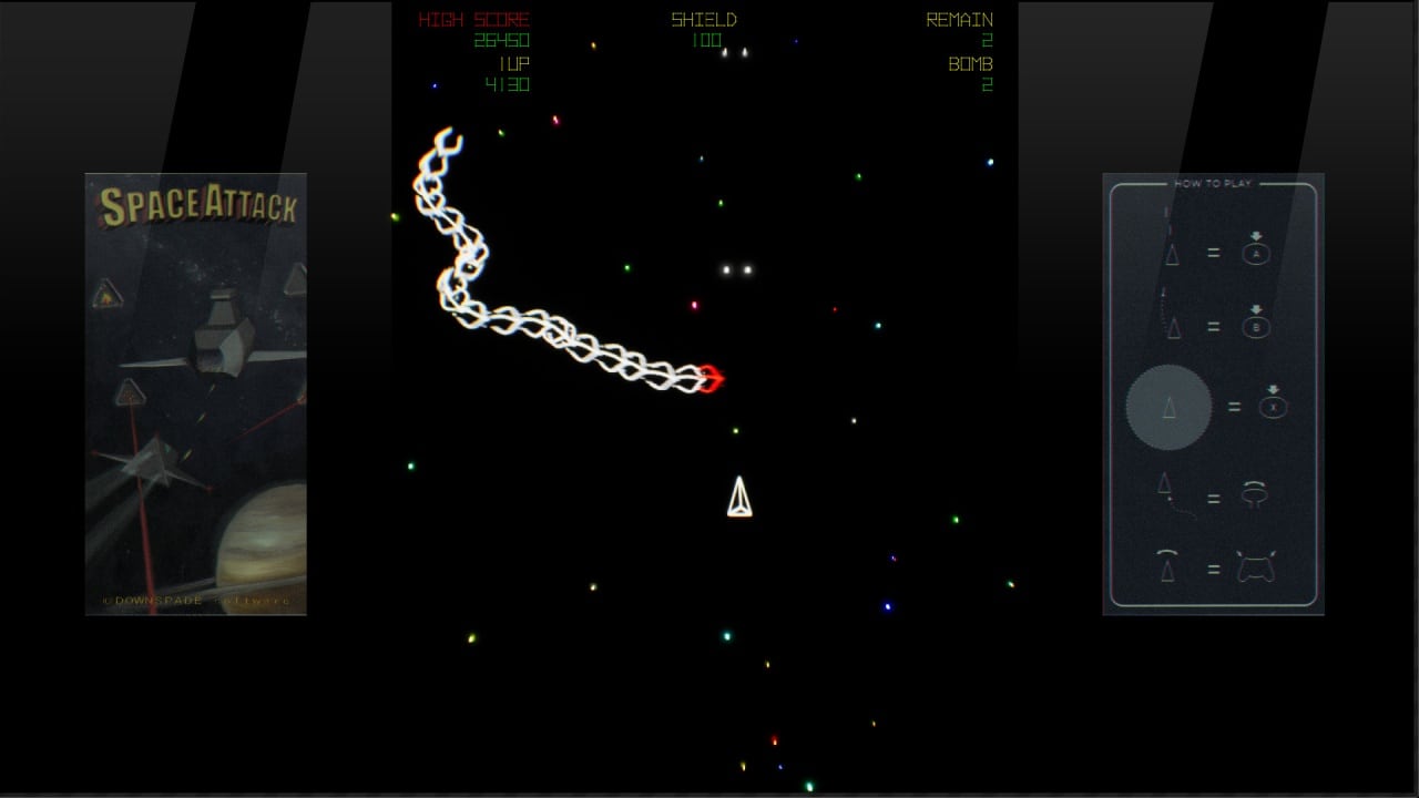 У Space Attack низкий порог вхождения. Тайтл ориентирован на казуальных геймеров, не знакомых со шмапами. Любители небольшого челленджа могут попробовать заработать все достижения. Всего тут 22 ачивки. Смысл игры состоит в том, чтобы уничтожать противников. Но при желании можно избегать некоторых схваток. Доступен один режим, что поделен на 6 этапов. Имеется секретный босс. Чтобы получить доступ к схватке с ним, нужно зачистить от врагов каждую карту на 100%. Управлять космическим кораблем разрешают с клавиатуры или геймпада. В инди-игре есть аркадная физика. При получении повреждений вражескую технику отбрасывает в сторону. Также летательные аппараты соперников правдоподобно разлетаются на куски.
