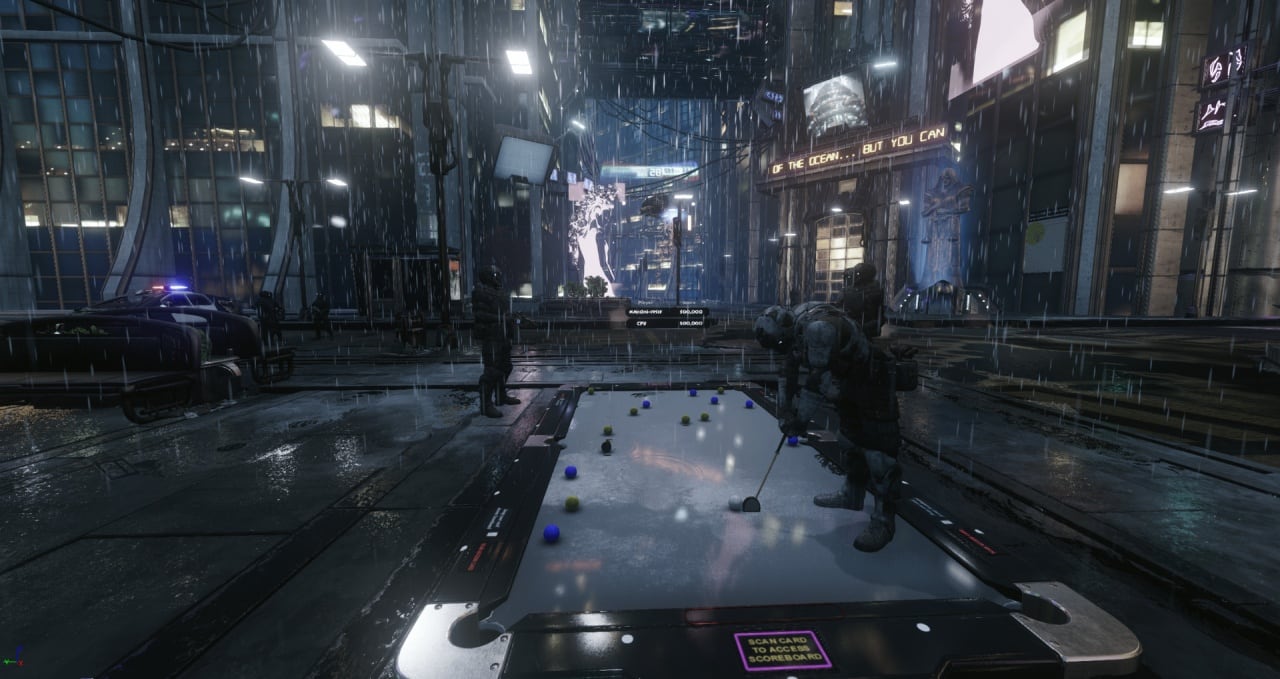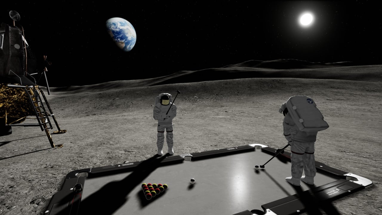 Golf Pool VR – это спортивная игра с видом от первого лица, сделанная специально для владельцев шлемов виртуальной реальности. Она представляет собой гибрид гольфа и бильярда. В ней нужно закатывать шарики в лунки с помощью клюшки. Однако делать это необходимо по правилам бильярда-восьмерки, также известного как Пул-8. По сути, здесь геймер стоит на бильярдном столе. Игрок может по нему перемещаться. Игровой процесс построен на физике. На выбор предоставляется несколько тематических карт. В наличии дождливый киберпанковский город, поверхность Луны во время высадки астронавтов, Антарктида, зеленый луг, крыша небоскреба и так другие места.