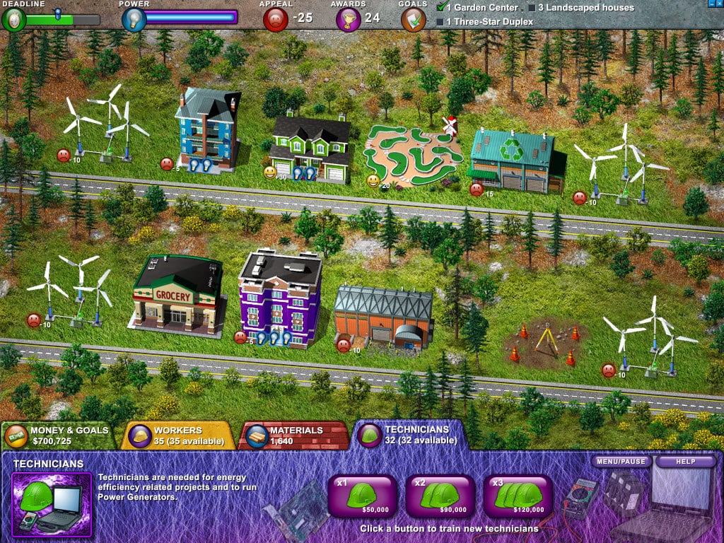 В русском переводе видеоигра называется Построй-ка 4. Город солнца. Графика в сравнении с предшественниками не изменилась. В четвертой части появилась механика с электричеством. Теперь нужно строить ещё и электростанции (ядерные, ветряные или на солнечных батареях). У разных зданий различается электропотребление. Если его не учитывать, то весь район может остаться без света. Тогда юзер не сможет получать арендную плату с конкретных мест, пока не решит проблему. Можно устанавливать в помещения энергосберегающие устройства, чтобы снизить нагрузку электросети. При желании геймеру позволяют играть с ограничением по времени или отключать таймер.