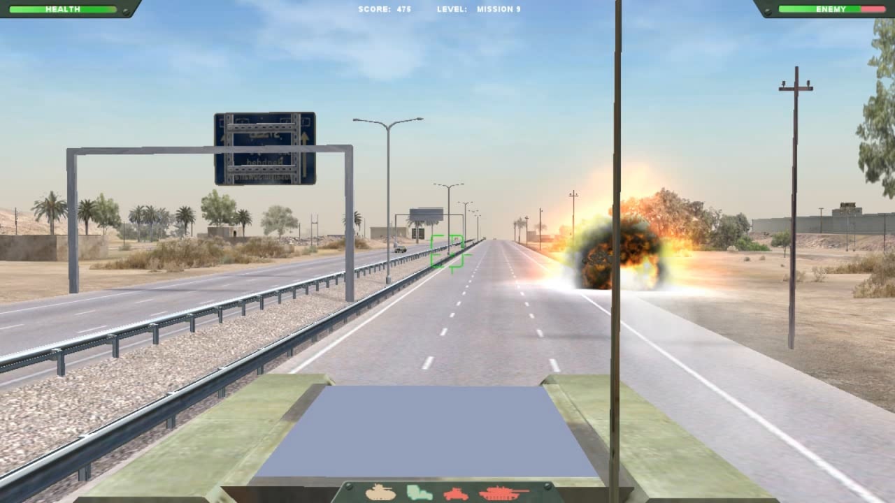 Станьте гордостью 1-й танковой дивизии! Разворачивайтесь на 360 градусов и меняйте тип вооружения в режиме реального времени. События развиваются в пустыне, где под палящим солнцем вам предстоит устроить жаркую войну. Не дайте противникам и шанса добраться до вас. Защитите себя и родину!