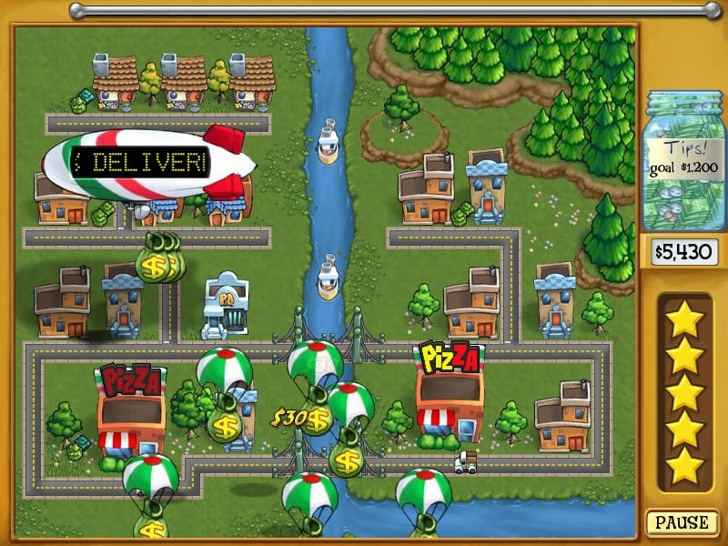 За успешную работу получайте награды, деньги и различные улучшения. Вы всегда можете посмотреть на город с высоты птичьего полета, охватывая ситуацию по всем районам. Следите за голодными клиентами и сопоставляйте риски. Получайте десятки заказов и старайтесь доставить пиццу заказчику настолько быстро, чтобы пища даже не успела остынуть. Максимально удовлетворяйте запросы клиентов и станьте сетью номер один по всему городу. Однако заботьтесь о своей репутации. Если она упадет до нуля, то игра будет окончена.