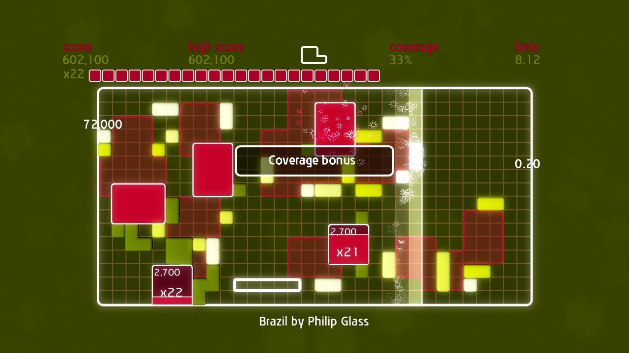 Меняйте петлю трека, размещайте фрагменты, чтобы воспроизводить ноты и многое другое. Старайтесь заполнить сетку, достигнув ста процентов. Продолжайте играть, чтобы установить личный рекорд. Каждый из шести представленных уровней состоит из уникальной музыки, локации и формы. Последний эпизод вдохновлен игрой Portal. Помимо кампании доступна свободная игра, содержащая три режима сложности.