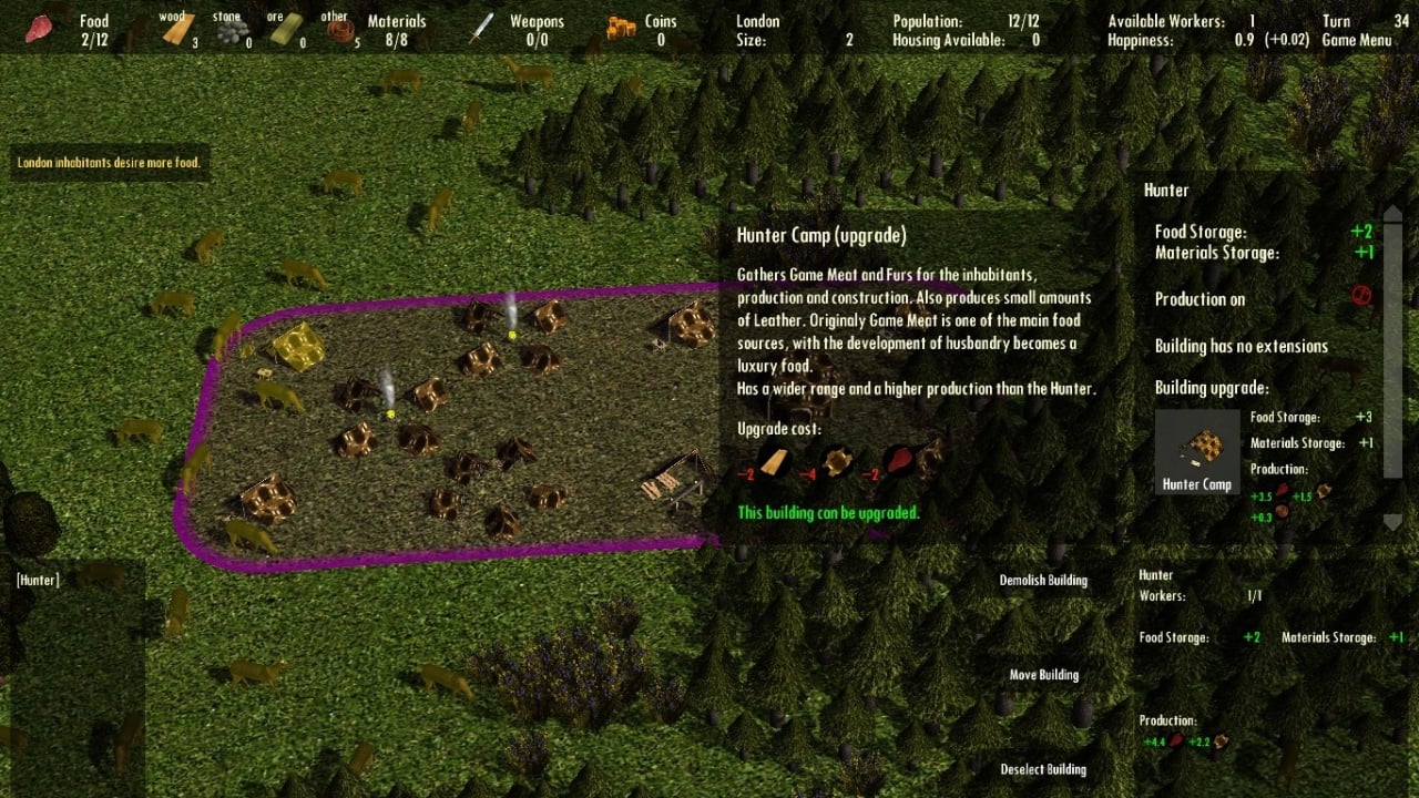 Карты делятся на два типа: маленькие и большие. Маленькие составляют площадь 100х100, а большие 500х500 плиток. Игровой процесс Clans to Kingdom строится на развитии поселения. Добывайте ресурсы, нанимайте крестьян для выполнения различной работы и т.д. Выстраивая новые виды зданий, изучайте технологии, позволяющие вам переходить на следующий этап развития. Рубите деревья, занимайтесь охотой, добывайте камень, золото и т.д.