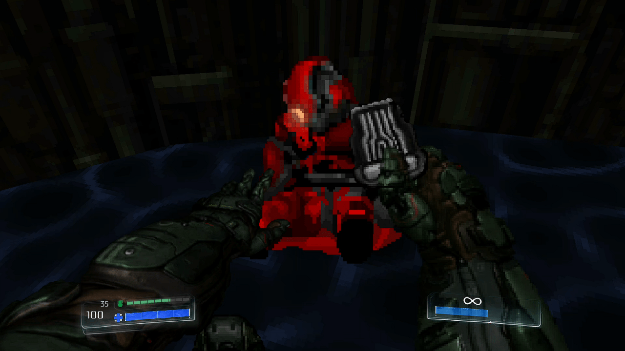 С помощью аргентэнергии можно повысить Думгаю характеристики: здоровье, броню и так далее. Арсенал модифицируется полевыми дронами. Также есть преторианские чипы. Герой умеет совершать двойной прыжок и цепляться за уступы. Частичная конверсия позволяет наводиться на демонов через оптические прицелы. Изображение при этом будет масштабироваться как в современных шутерах. Проект сделан на движке sourceport. Модификация совместима с портом GZDoom и пользовательскими аддонами. При желании она позволяет добавить противников из нового "Дума".