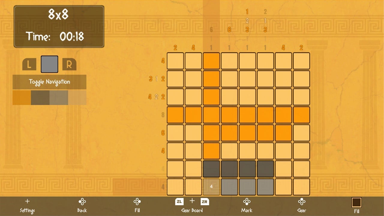 В геймплее представлены миссии для новичков и опытных игроков нонограм. Карты делятся между собой: от 5х5 до 20х20. Чем больше элементов на области, тем сложнее будет решение. Геймер способен выбирать цветные головоломки, чтобы разблокировать доступ к более хардкорным задачам. Постепенно юзер будет улучшать собственные способности и устанавливать личные рекорды. Разработчики учли недочеты предыдущих проектов, предоставив улучшенный интерфейс и окружение, а также понятную цель на каждом уровне.