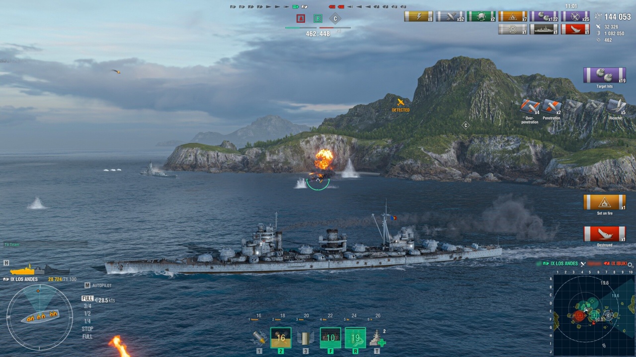Также в World of Warships есть несколько видов боев. Командный бой - 4х4. Четыре реальных игрока сражаются против четырех ботов. Случайный бой - классика игры. 12 персонажей сражаются на одной карте друг против друга. Ранговые бои доступны раз в сезон, и их цель - победа ради повышения ранга вашего аккаунта. Отдельный вид боев - операции. 6 игроков на кораблях 5-6 уровня выходят на поединок против флота определенной страны. Операция всегда с сюжетом. Клановые бои доступны объединенным игрокам. Проводятся 7х7 на различных уровнях. Клановые бои устраиваются в лигах. Карты прорисованы хорошо, нации выглядят именно так, как должны.