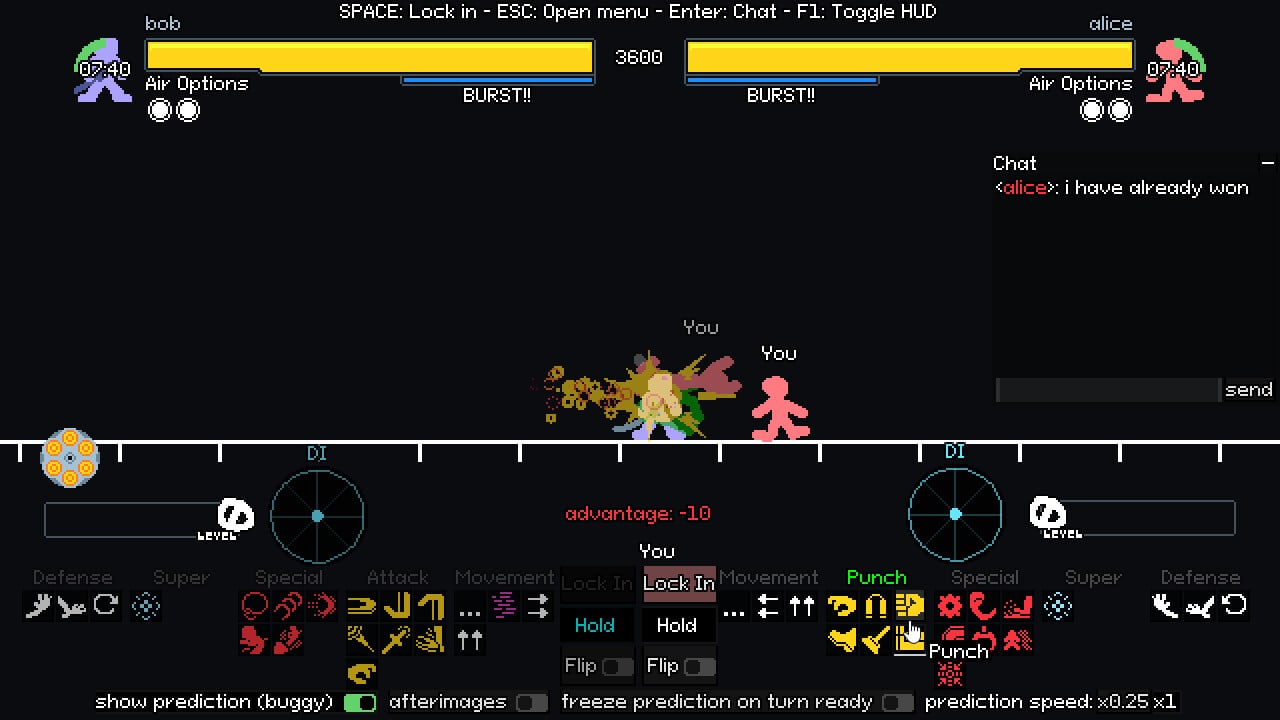 Your Only Move Is HUSTLE - двухмерный файтинг, в который можно играть по сети с другом или рандомными игроками на пиратке бесплатно, сражаясь в напряженных матчах и показывая свое мастерство смертоносного убийцы. Можно играть по интернету онлайн или соревноваться локально. Управляя своим персонажем, требуется выполнять эффектные комбо. Геймплей Your Only Move Is HUSTLE представляет собой пошаговый симулятор, позволяющий планировать свои действия, создавая по-настоящему захватывающие боевые сцены. Возможность бесплатной сетевой игры предлагает устроить кровавые соревнования за звания мастера боевых искусств. Доступны режим песочницы, тренировка и сетевая игра.