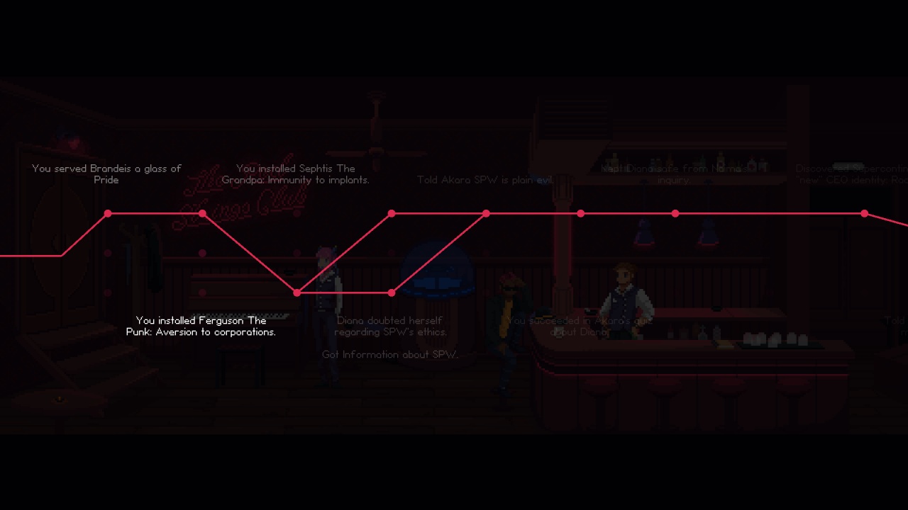 The Red Strings Club погружает в мир киберпанка и даёт возможность нетривиальными методами разрушить злобные планы очередной мега-корпорации.