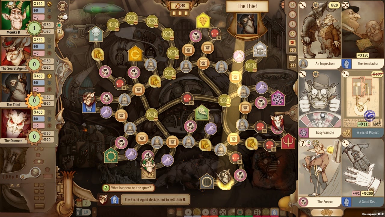 Фитча игры в картах, что раздаются пользователям из колоды - у каждого их 6, и если потратить одну, то добавляется новая. Карточки израсходуются перемещение, чтобы передвигаться по доске, или разыграть ее, чтобы получить определенный эффект, к примеру, очки, золото, голоса избирателей. В колоде 130 карточек и у каждой есть конкретные эффекты, которые следует запоминать. Карта разыгрывается на конкретной клетке, например, Наследство – в Банке, а Джекпот уже в Казино.