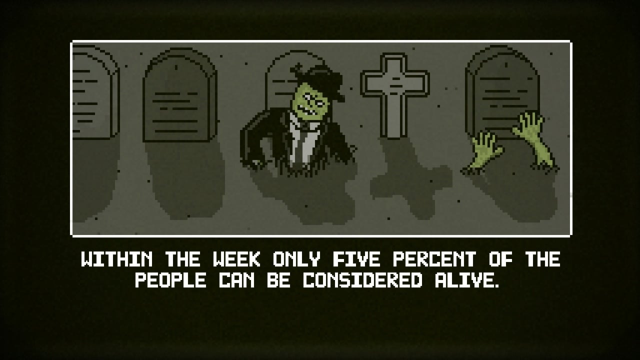 Dead Pixels - пиксельный зомби-выживастик, повествующий о выбросе в систему водоснабжения токсичных отходов, которые превратили всех жителей города в живых мертвецов. Главный герой хватает оружие и отправляется очищать город от заполонившей ее нежити.