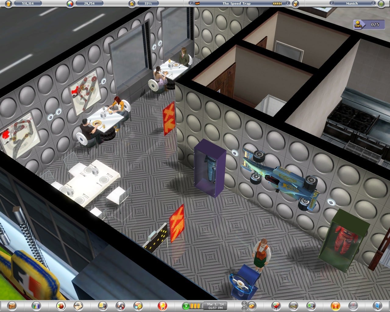 Вы начинаете в маленьком заведении, вам предстоит борьба за каждого посетителя, ведь только они могут запустить сарафанное радио о качестве вашего ресторана. Произведите впечатление на них аккуратной сервировкой столов, правильно подобранной музыкой и свежими продуктами. Вербуйте специалистов своего дела, они помогут в развитии и процветании вашего семейного дела.