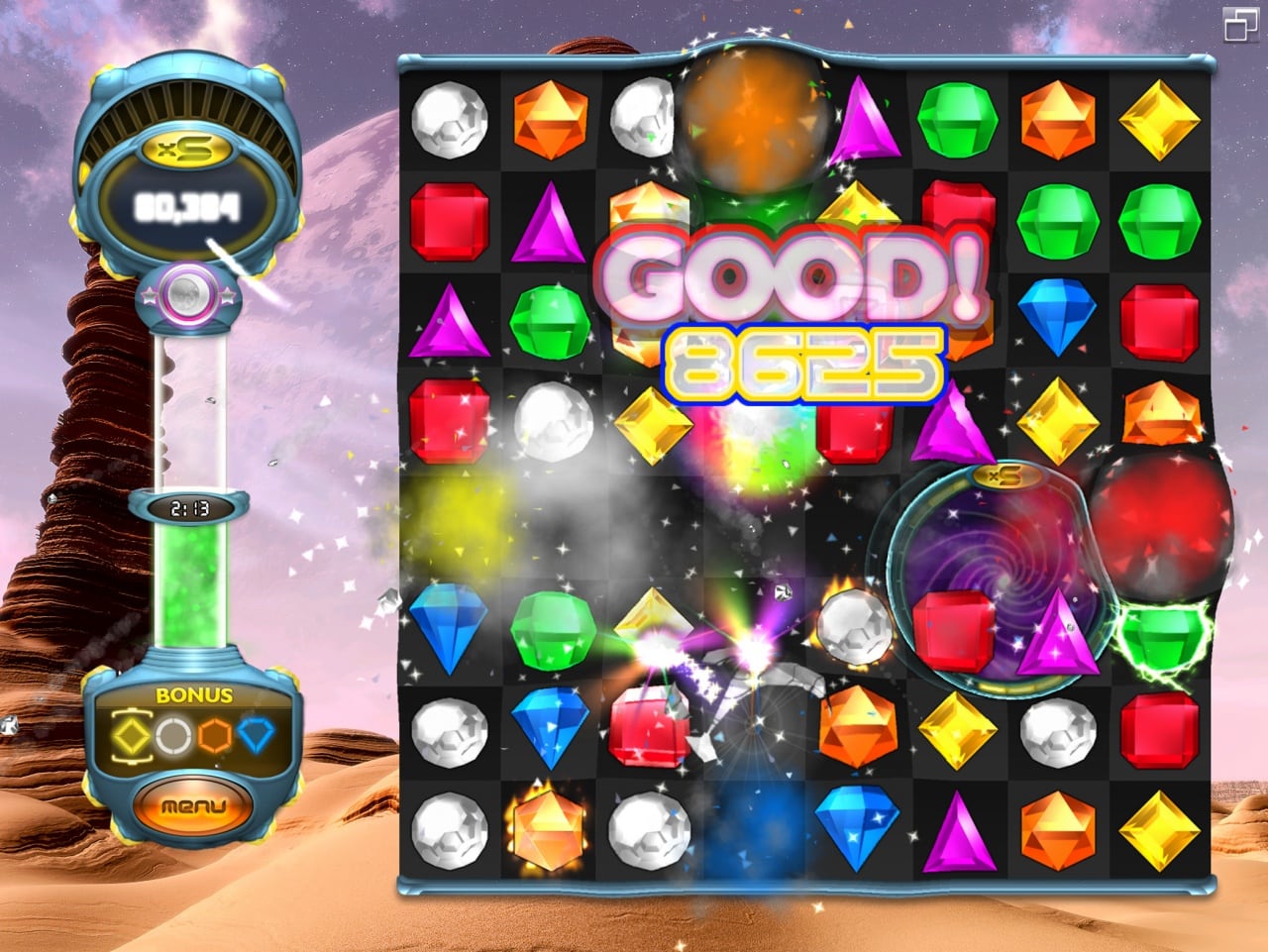 Bejeweled Twist - яркая головоломка в жанре три-в-ряд. Как и в любой другой игре с подобной механикой, вам необходимо сопоставлять в один ряд драгоценности одинакового цвета. Вы можете спокойно вращать камни, чтобы выстроить из них одну цепочку. Чтобы получить бонусы, необходимо выставить в ряд три или больше одинаковых камней. Увеличивайте множитель, выставляя четыре и больше драгоценностей за раз.