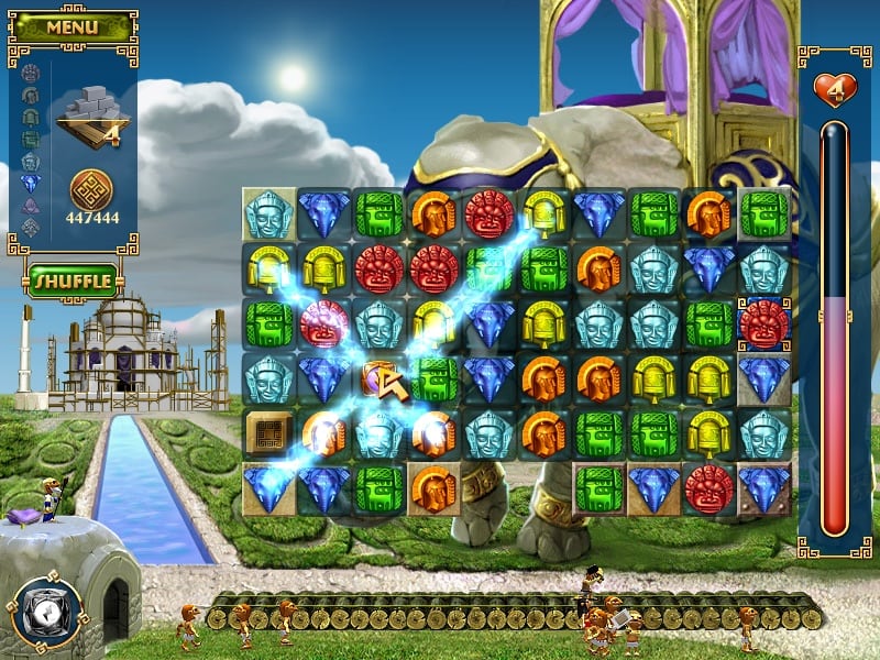 Ваша задача состоит в том, чтобы собирать в один ряд три и более блоков одного цвета. Выстраивая в цепочку одинаковые кубы, вам начисляются победные баллы. В зависимости от количества встроенных блоков, вы увеличиваете множитель. главное в 7 Чудес 2 - заработать максимальное количество очков и поставить рекорд времени.
